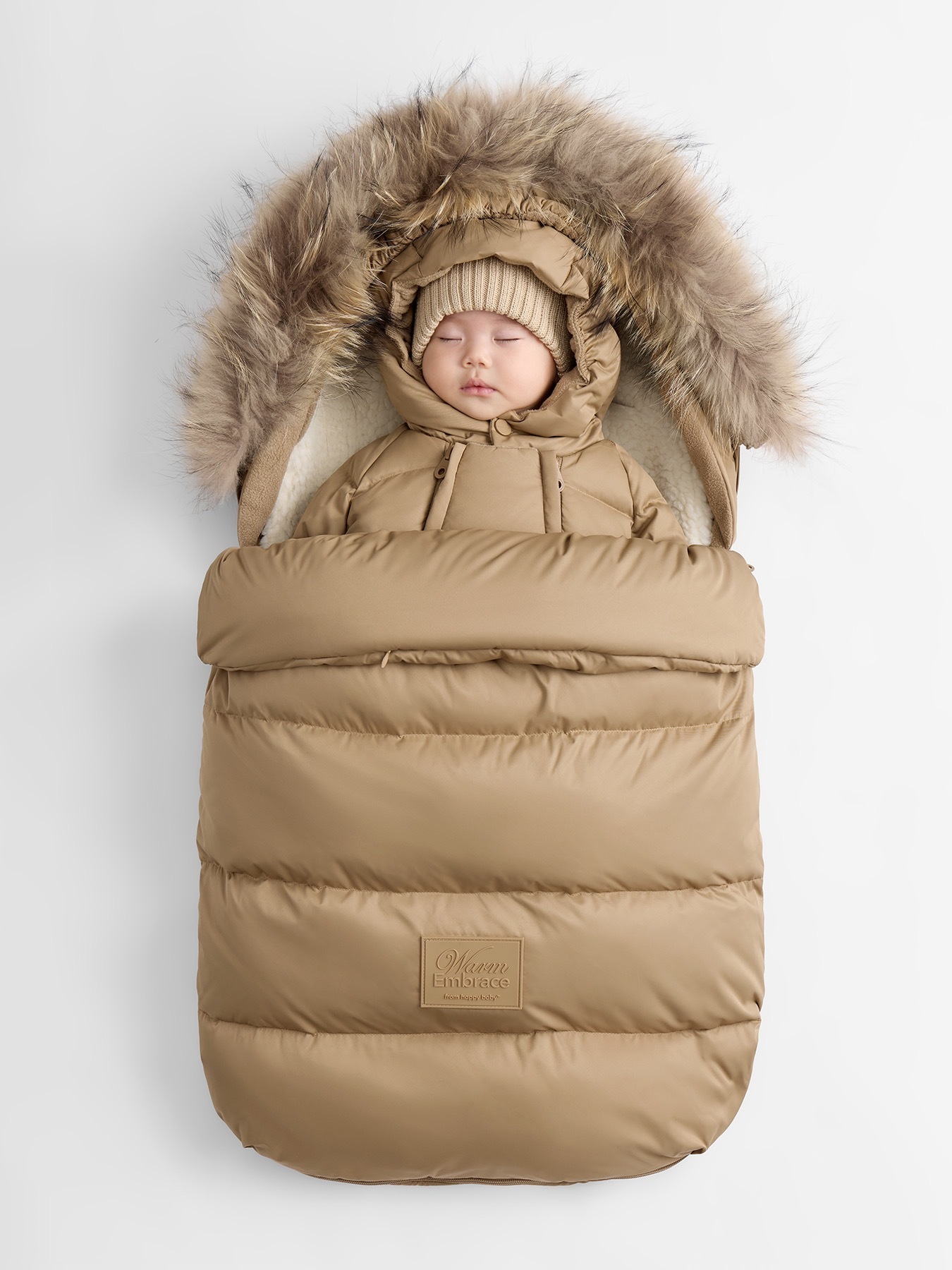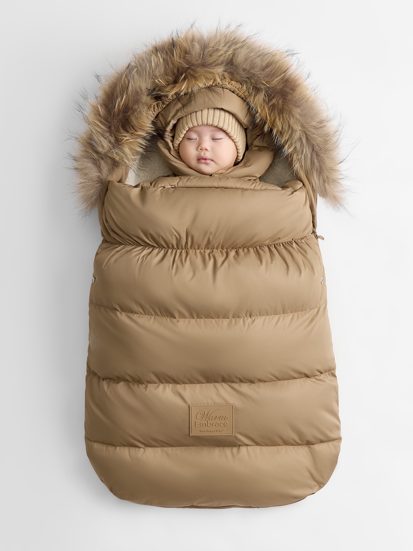 Детский зимний конверт для новорождённых обеспечивает надёжную защиту от холодного ветра и мороза.