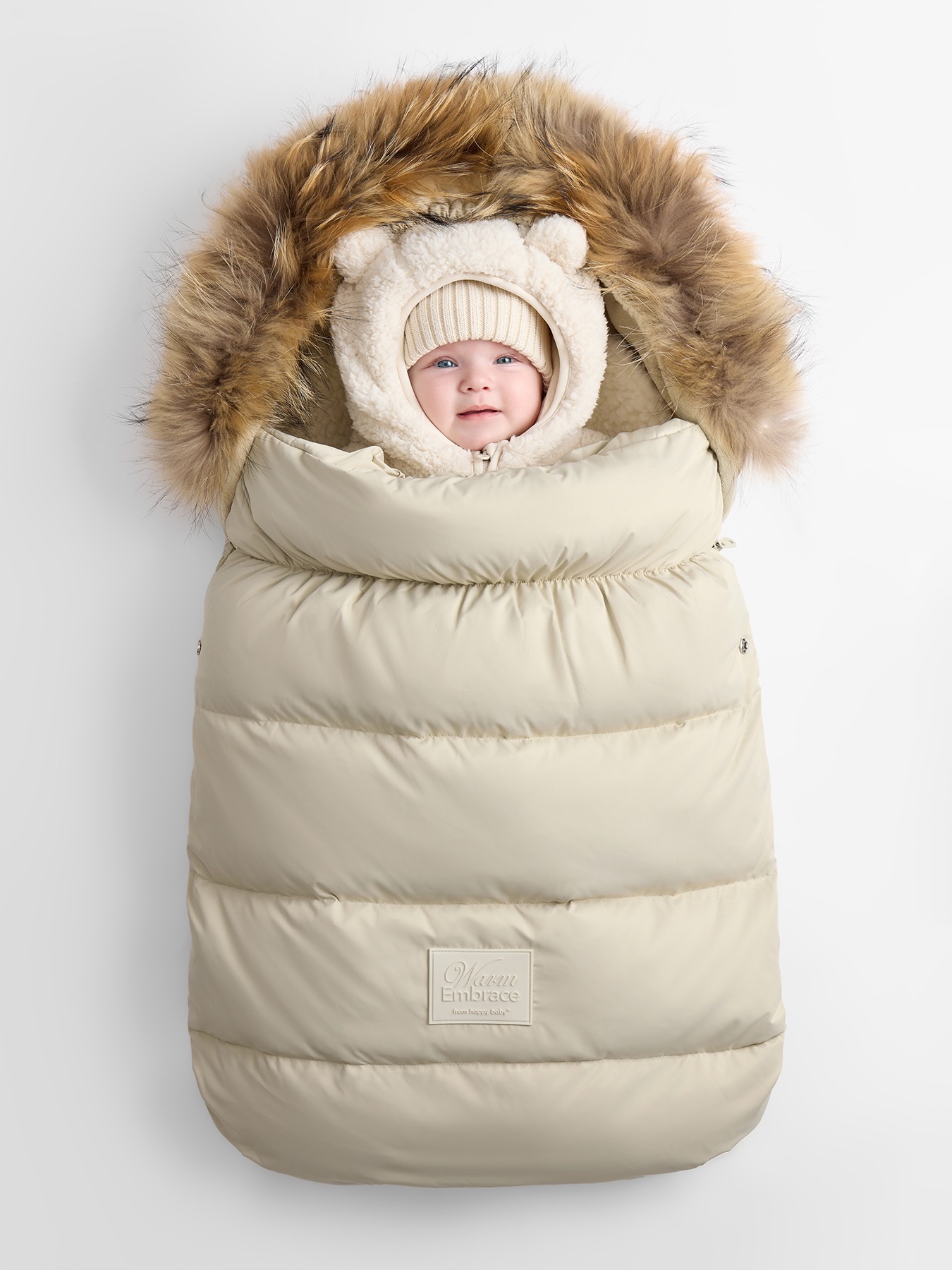 • Съёмный меховой вкладыш — регулирует уровень утепления: добавьте его в мороз или уберите в более тёплую погоду. Вкладыш универсален и подходит для использования в коляске, санях и автокресле.