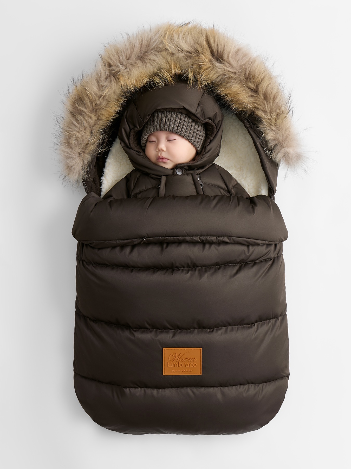 Детский зимний конверт для новорождённых обеспечивает надёжную защиту от холодного ветра и мороза.