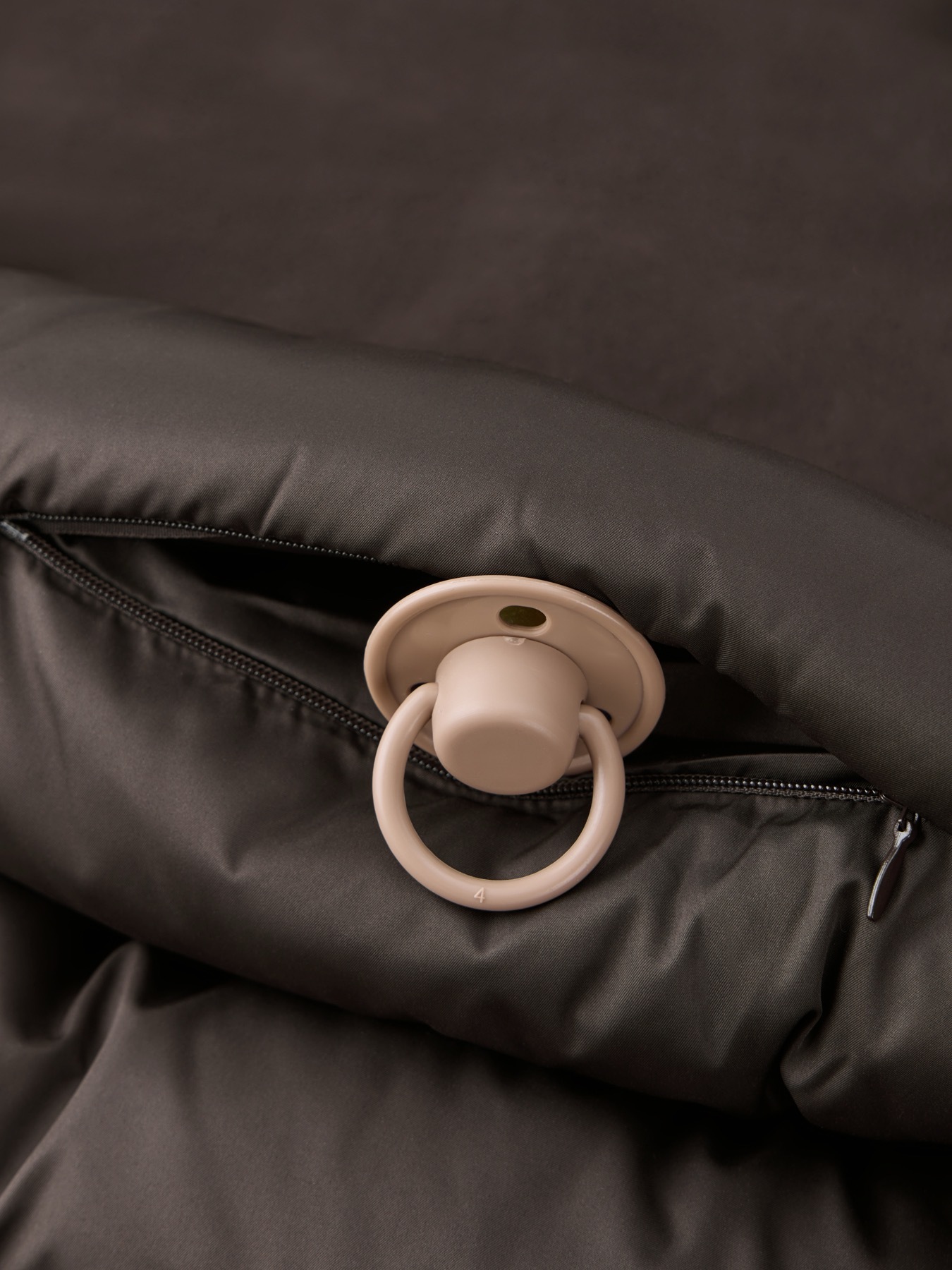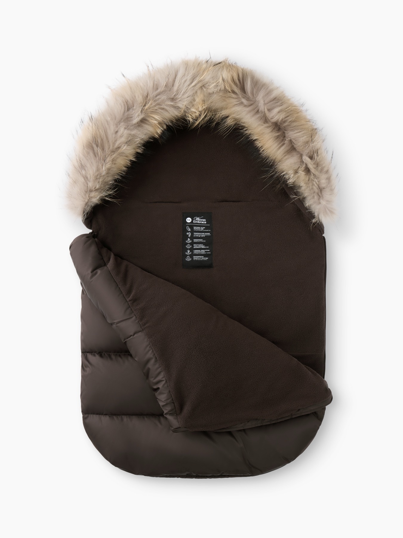 • Съёмный меховой вкладыш — регулирует уровень утепления: добавьте его в мороз или уберите в более тёплую погоду. Вкладыш универсален и подходит для использования в коляске, санях и автокресле.