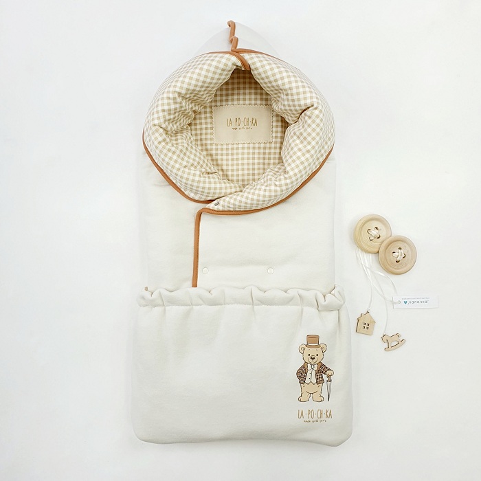 Элегантный и практичный конверт, идеально подходящий для выписки из роддома и первых прогулок. Модель выполнена в светлой гамме, выглядит аккуратно и торжественно, сохраняя при этом удобство в использовании.