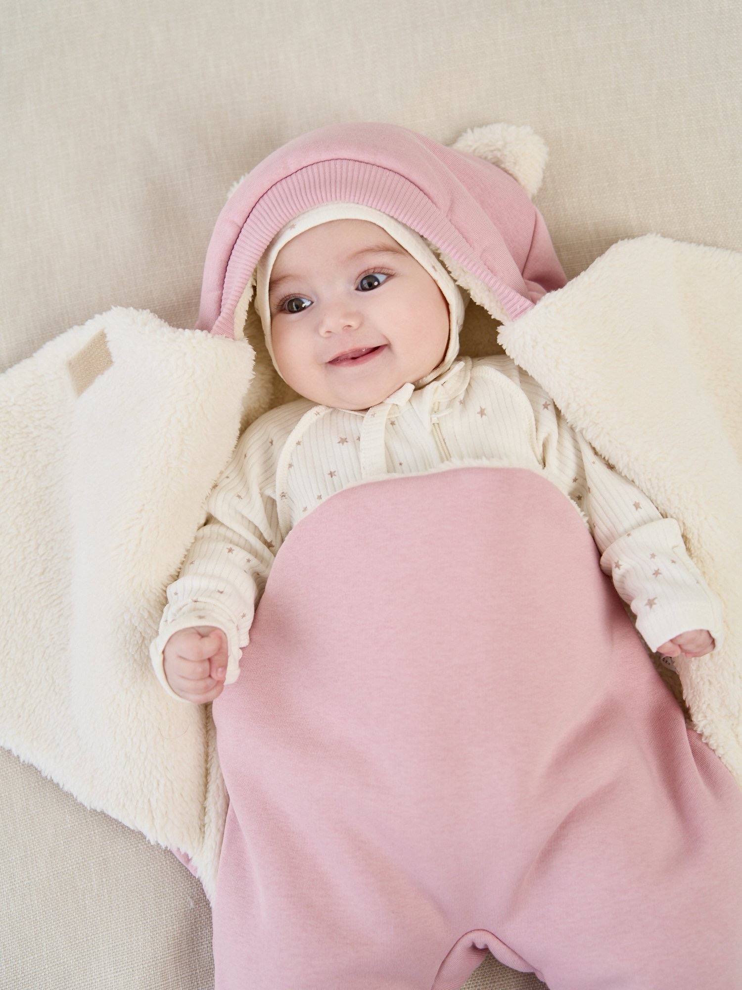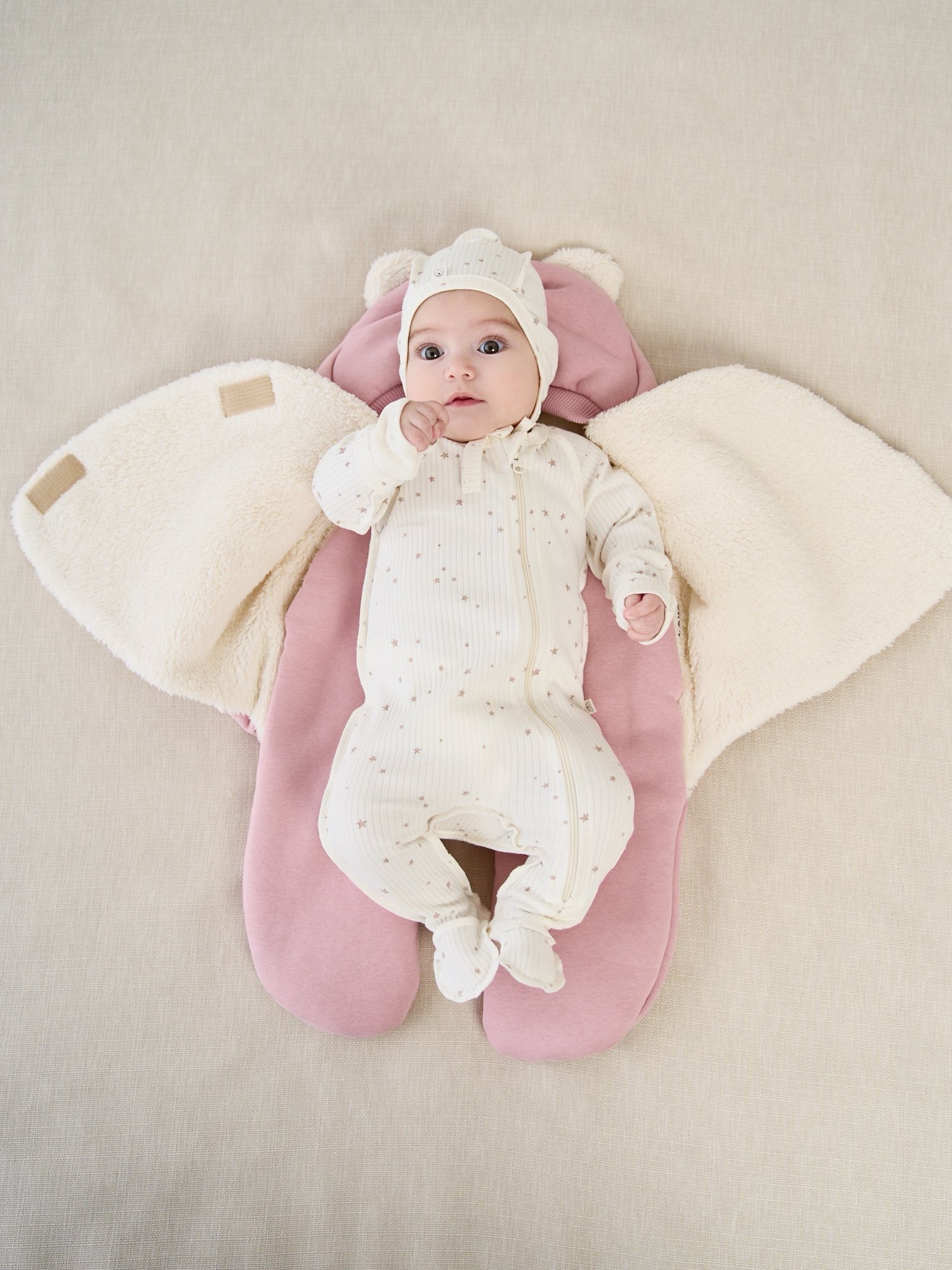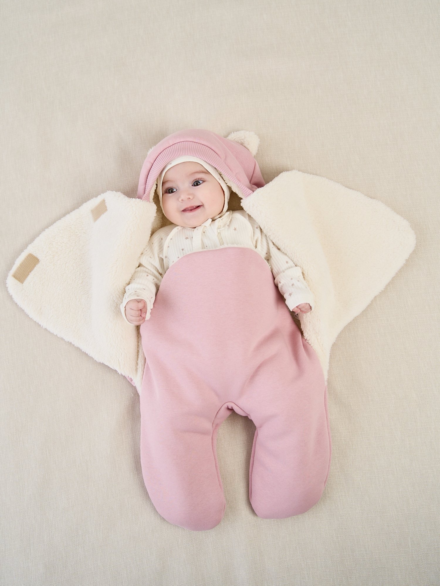 Конверт нежно обнимает малыша, создавая ощущение уюта и защищённости, как в маминых объятиях.