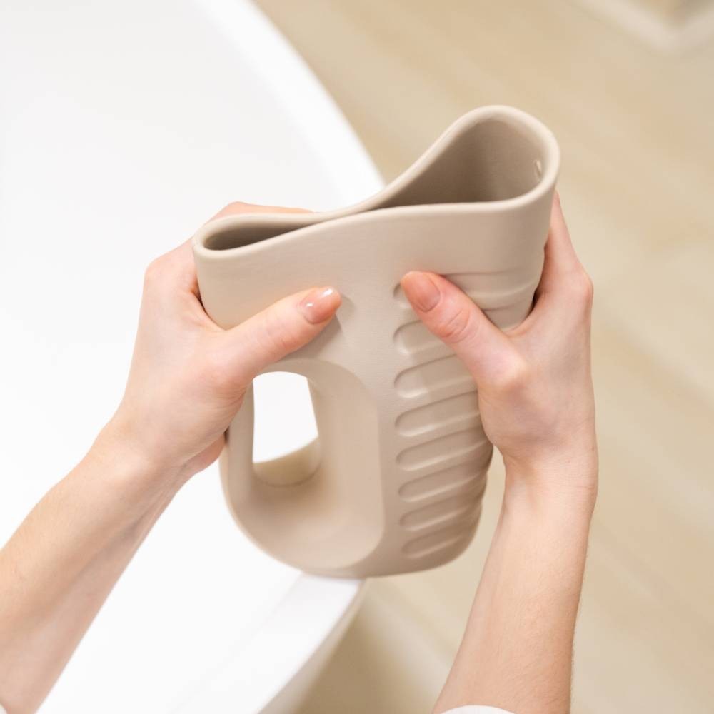 Кувшин для первых водных процедур новорождённого. Объём кувшина edda — 1 литр, он оптимален для купания младенца. Лёгкий кувшин комфортно держать одной рукой, даже когда он наполнен. Гибкий и мягкий, кувшин остаётся бесшумным при падении. Он выполнен из гигиеничного EVA-материала, устойчивого к образованию плесени при высокой влажности. Гипоаллергенность, мягкость материала и обтекаемая форма без острых углов делают кувшин безопасным для новорождённых.