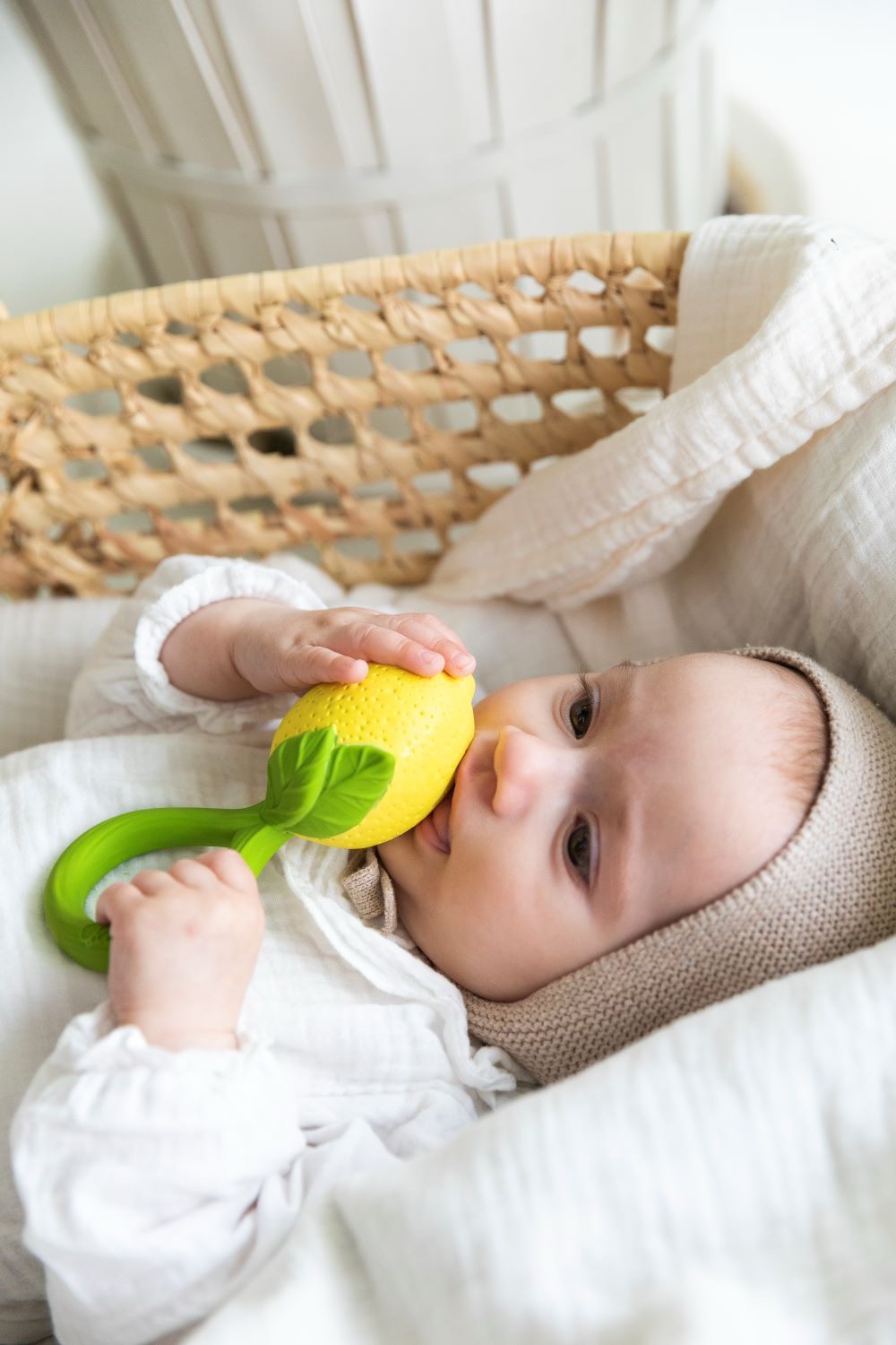 Коллекция погремушек-прорезывателей в виде фруктов и овощей от бренда Oli&Carol – это экологичные игрушки 2-в-1 из натурального каучука, окрашенные вручную пищевыми красителями и наполненные переработанными косточками вишни. Приятный звук погремушки успокаивает и не вызывает перевозбуждения у детей.