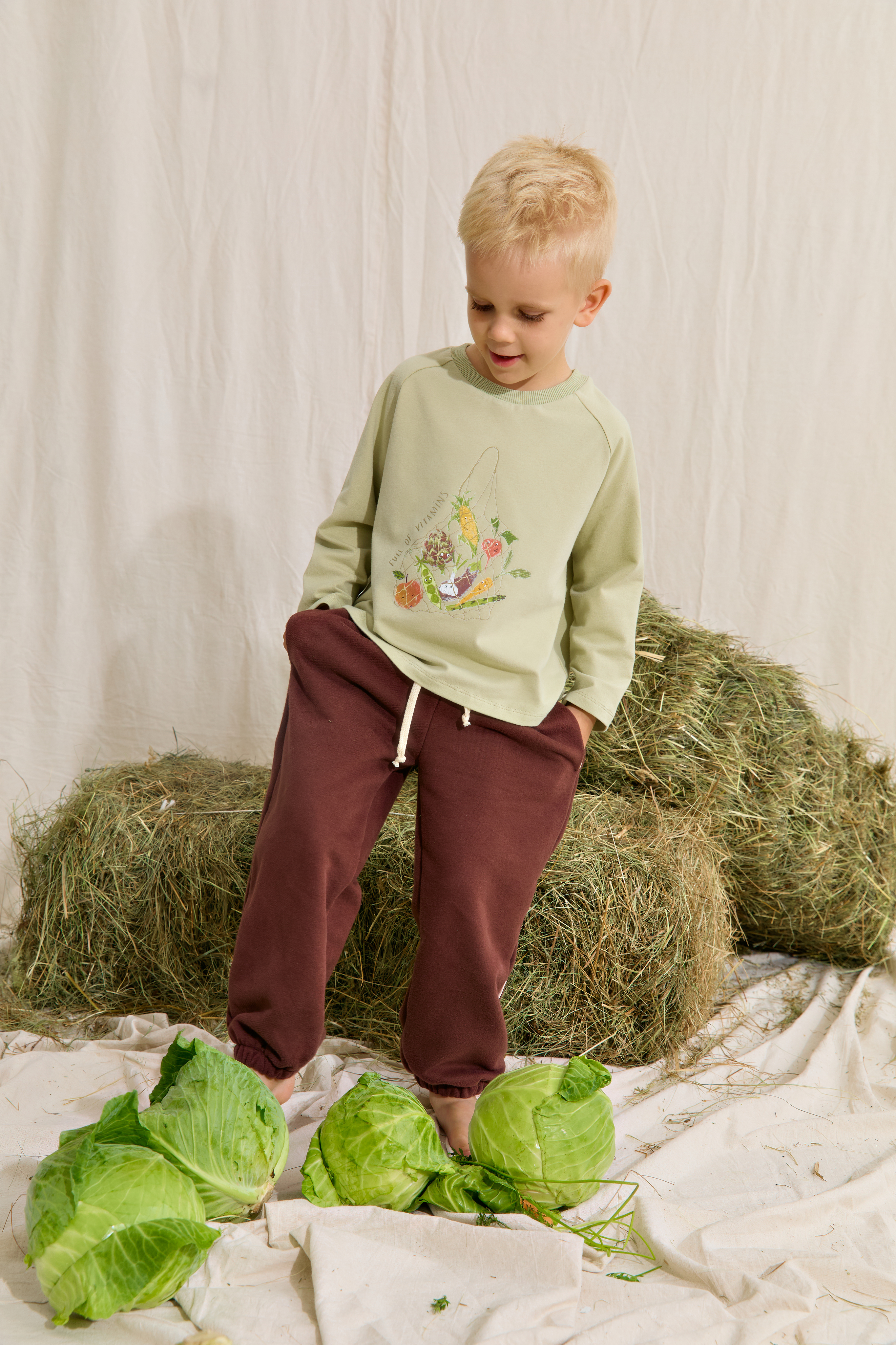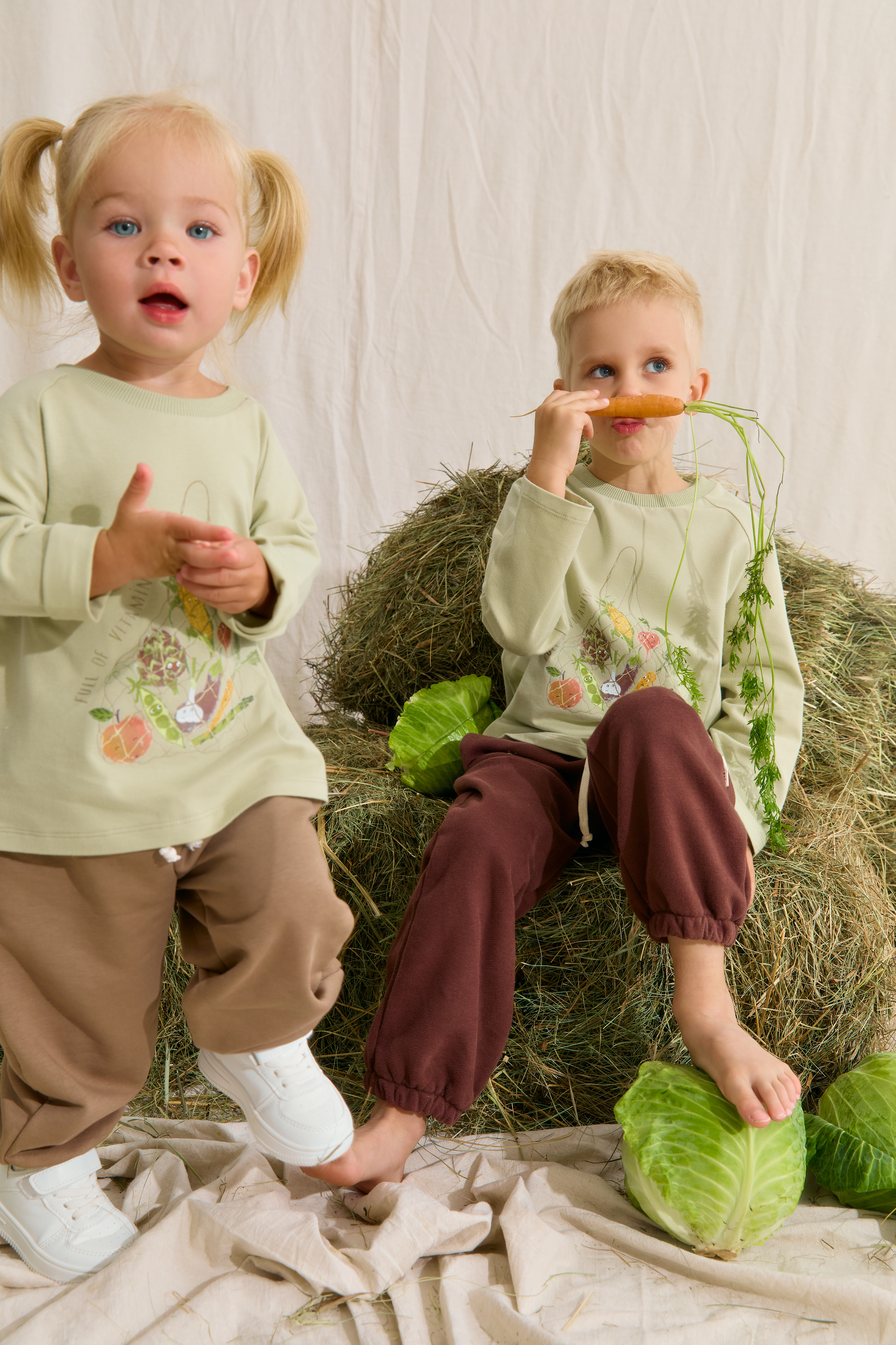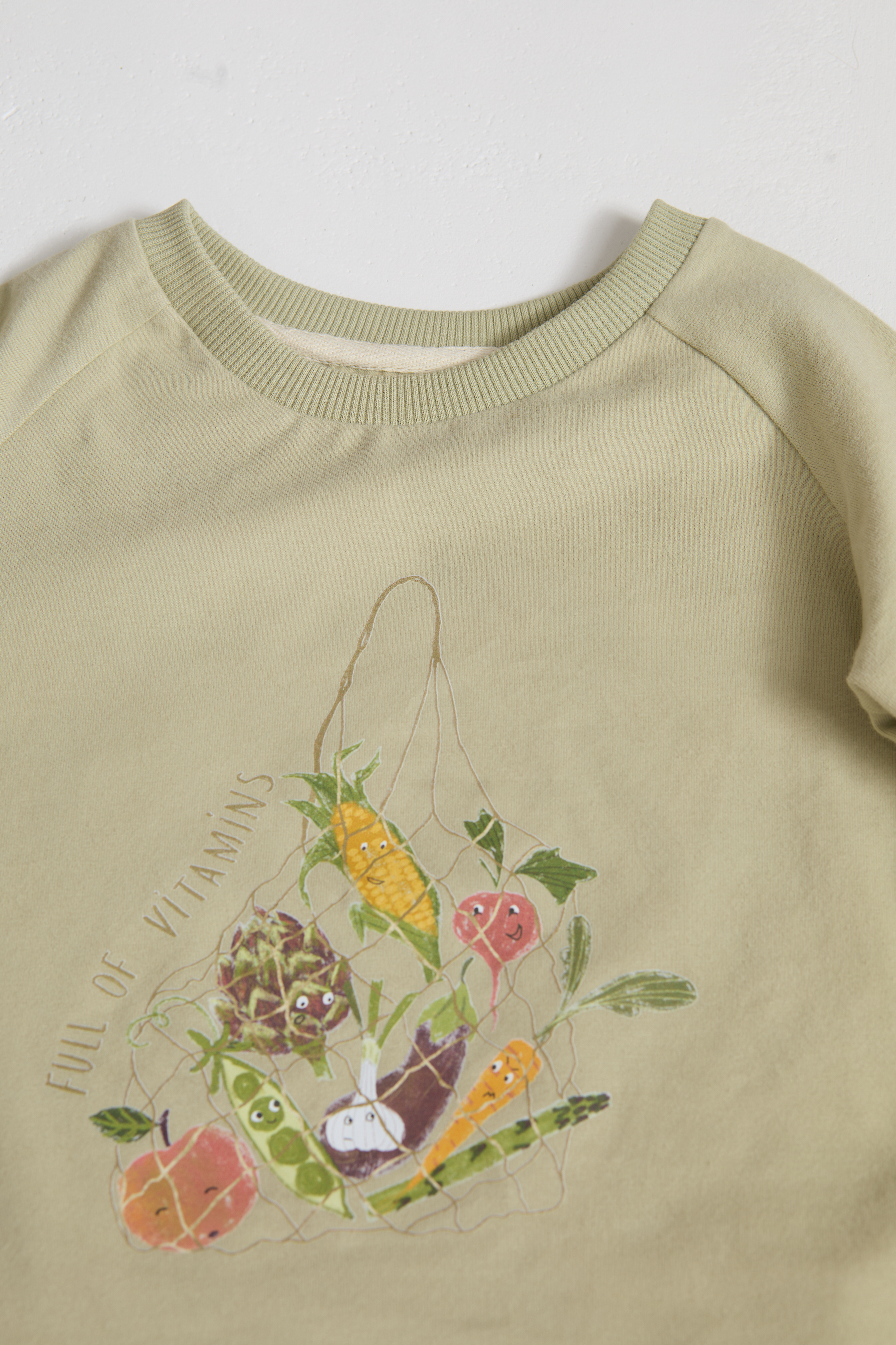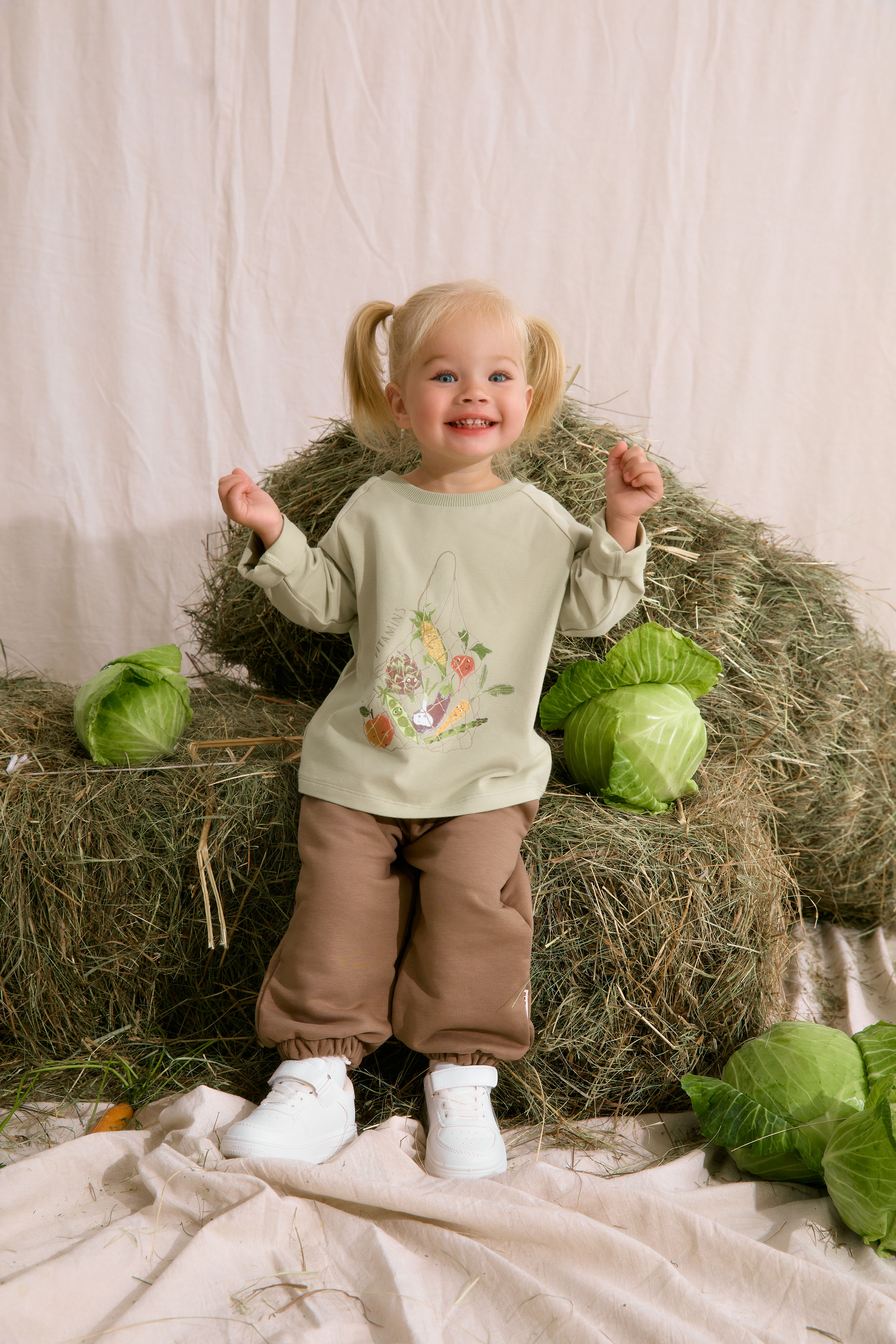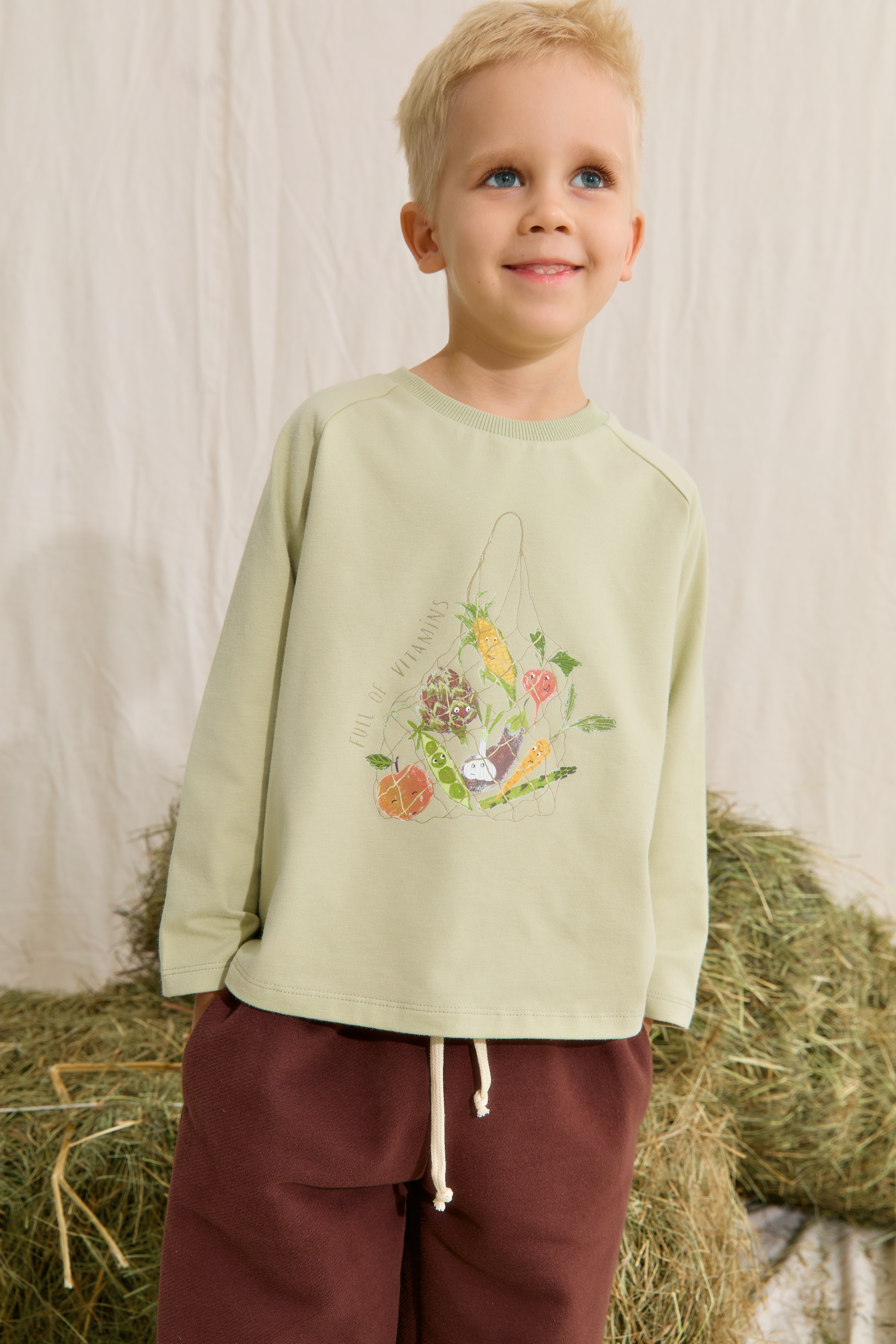 Впервые мы сделали лонгслив из мягкой бархатистой базы в цвете — матча. Лонгслив с «трогательным» эффектом станет лучшим решением осеннего гардероба. Модель оверсайз с рукавом реглан и авторским принтом «Full of vitamins»