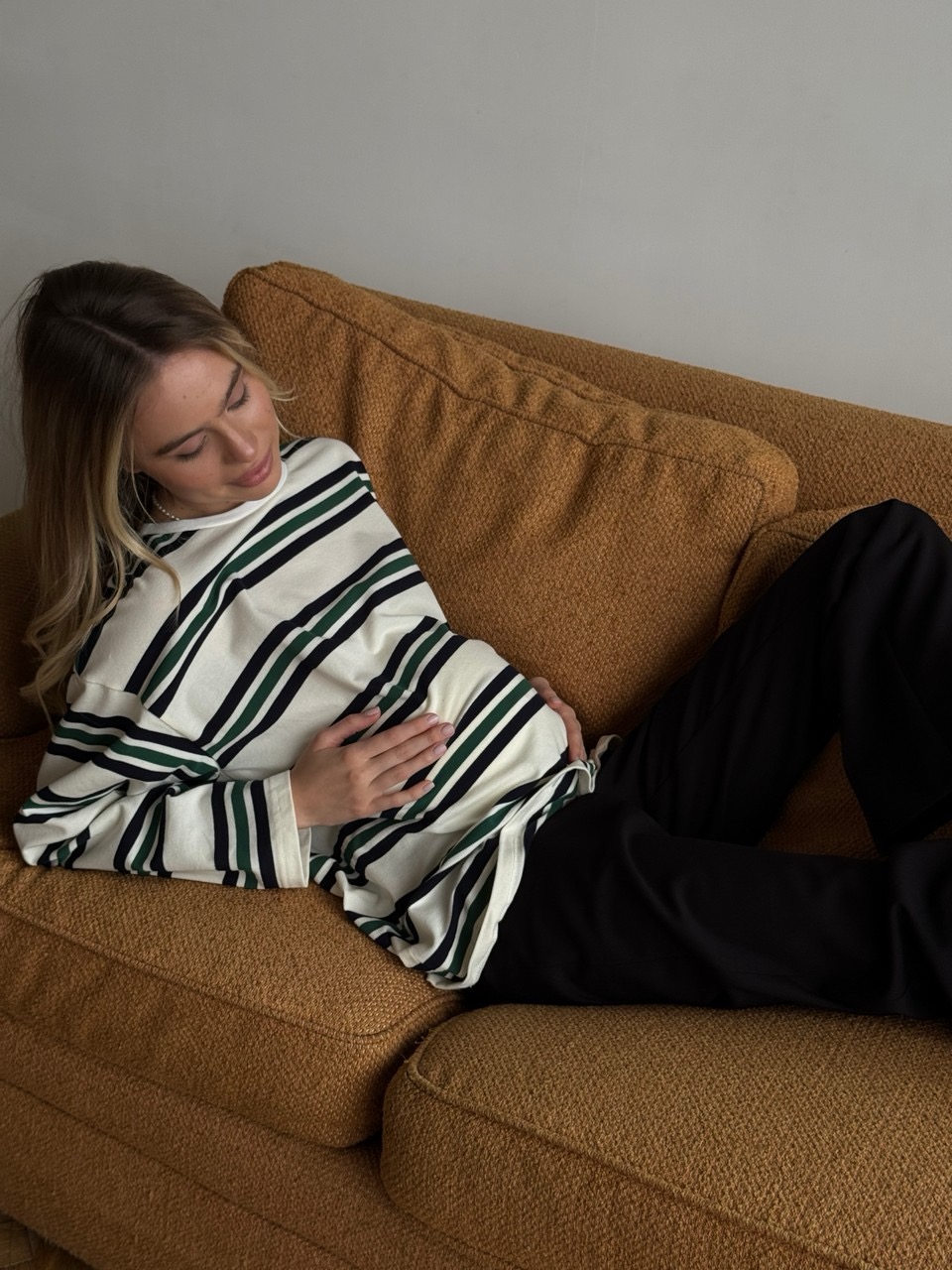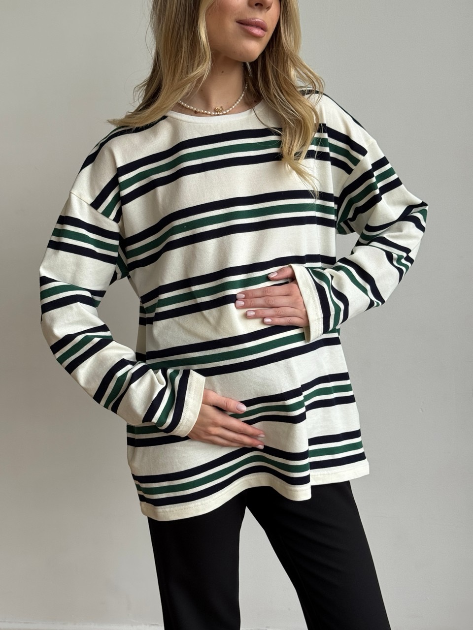 Мы создали лонгслив, который вы сможете носить несколько лет: в беременность, после родов кормя малыша грудью и даже после завершения ГВ. Базовый лонгслив в полоску из хлопкового, фактурного трикотажа пике станет частью ваших стильных беременных образов, а после родов вы сможете оценить, как удобно в нем кормить малыша грудью. Мы спрятали две незаметные молнии в боковых швах - перенесите шов в область груди и не поднимая лонгслива покормите малыша грудью. Завершив грудное вскармливание вы сможете и дальше носить любимую вещь, ведь секреты для кормления в ней совсем незаметны.
