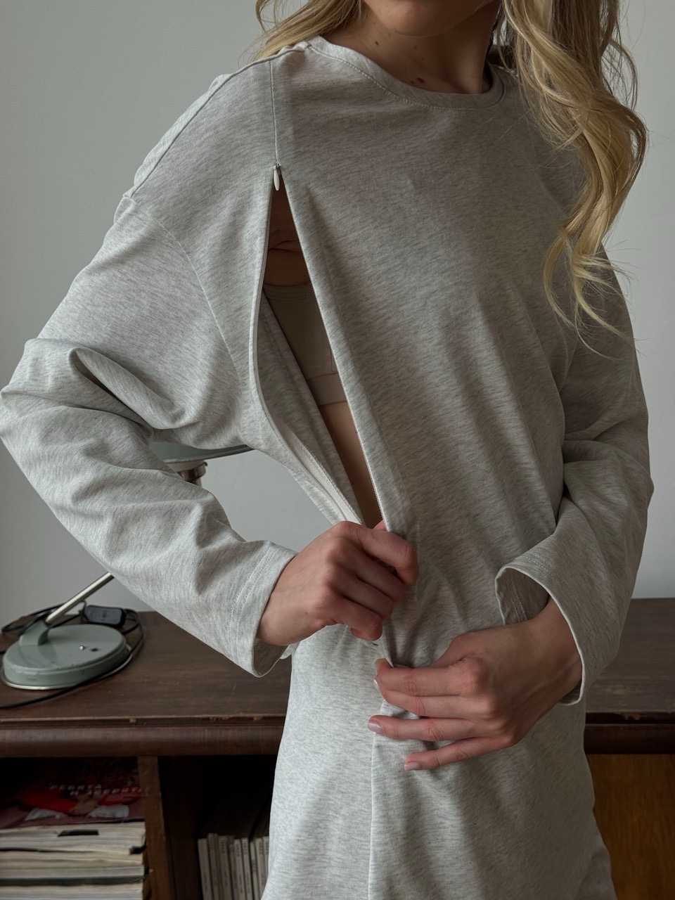 Функциональный и практичный лонгслив который вы сможете носить в беременность и после родов. Мягкий, хлопковый трикотаж приятен к телу и не вызывает раздражения. В рельефах спрятаны молнии для комфортного кормления малыша грудью. Оригинальность лонгсливу придает декоративная шнуровка на спине которую можно ослабить на беременность, а после родов подчеркнуть талию. Носите лонгслив с брюками из этой же ткани, джинсами или летящей юбкой. Чтобы было удобно расстегивать секрет для кормления, рекомендуем не затягивать сильно шнуровку на спине. После стирки ткань дает усадку 1,5 см в ширину, 2 см в длину, 1-1,5 см по рукаву. Пожалуйста, учитывайте этот момент при выборе размера.