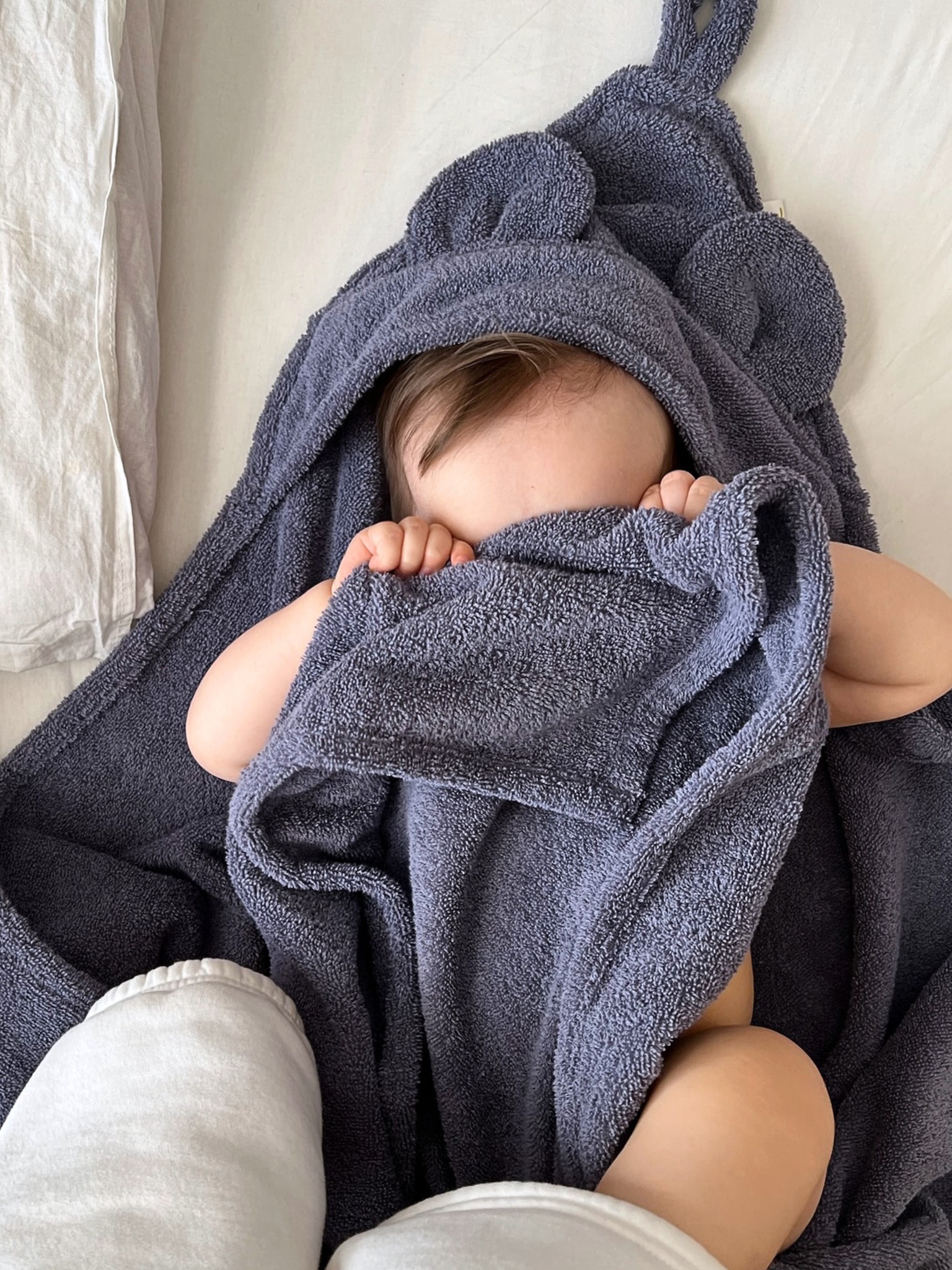 Детское махровое полотенце с капюшоном изготовлено из 100% махрового хлопка.