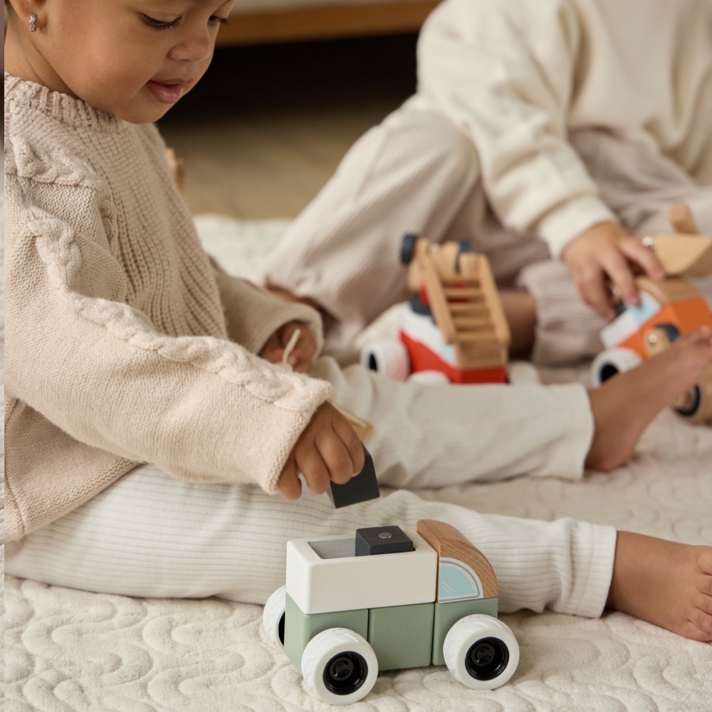 • Соберите «Мини-автопарк» — в серии представлены 6 машинок-конструкторов с разными ролями, например, пожарная машина и грузовик, позволяя играть машинками вместе в едином сюжете.