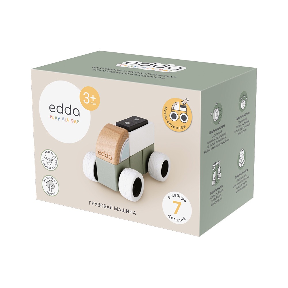 Уникальная серия конструкторов «Мини-автопарк» edda – это увлекательные развивающие занятия как для самостоятельной игры малыша, так и для игры с близкими. Собирайте и разбирайте машинки, знакомясь с принципами сборки и получая первые навыки конструирования. В серии представлены следующие модели: грузовая машина, автокран с магнитом, пожарная машина, строительная машина, погрузчик, лесовоз с краном. Соберите «Мини-автопарк», чтобы построить настоящий город Детства!