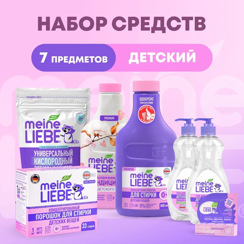 Чтобы Ваши дети могли сорить и пачкаться в чистоте Вам просто необходим Набор эко -средств «Детский» от Meine Liebe! Все средства протестированы дерматологами и имеют протоколы испытаний, подтверждающие возможность их использования с первых дней жизни ребенка. Все средства гипоаллергенные, без отдушек и красителей, поэтому их можно использовать и людям, склонным к аллергии. В подарок к этому набору вы получите детский карандаш - пятновыводитель, который выводит все виды пятен, которые могут появиться на детской одежде.