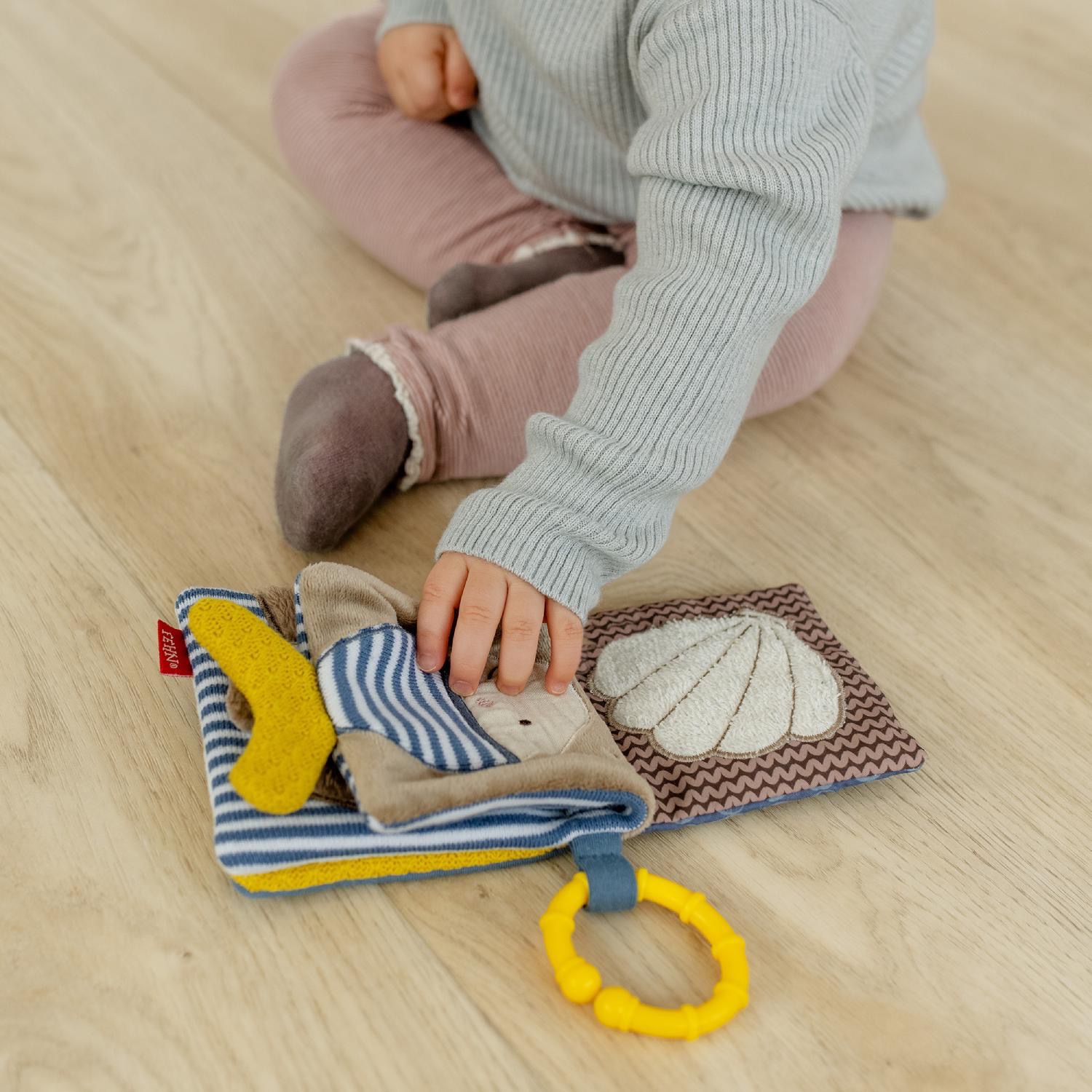 - Игрушка-книжка развивает у малыша сенсорное и слуховое восприятие, моторику и стимулирует воображение.