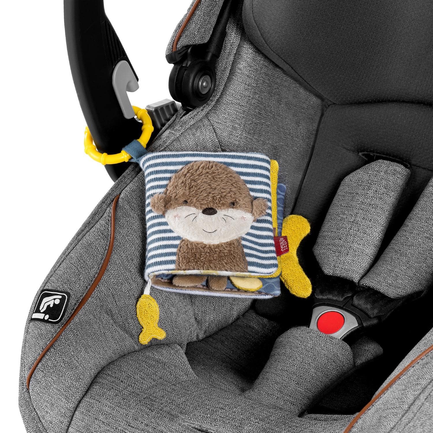 - У игрушки есть специальное колечко, которым удобно крепить её к коляске, кроватке или автокреслу.
