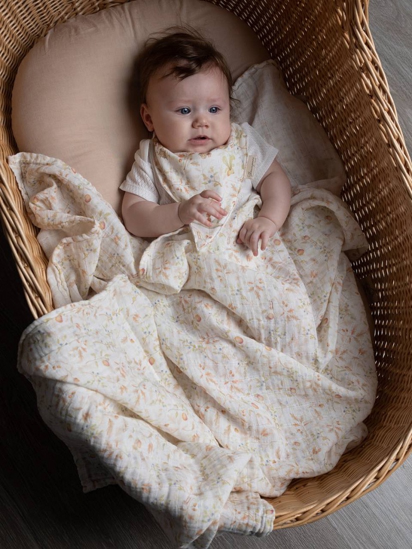 Большой размер 120 × 120 см даёт массу вариантов использования: можно классически пеленать, накрыть малыша как пледом, постелить в коляску или кроватку, использовать как накидку для кормления, полотенце после купания или простынку в дороге. Одна пеленка — много сценариев, а если взять пару, станет совсем удобно.