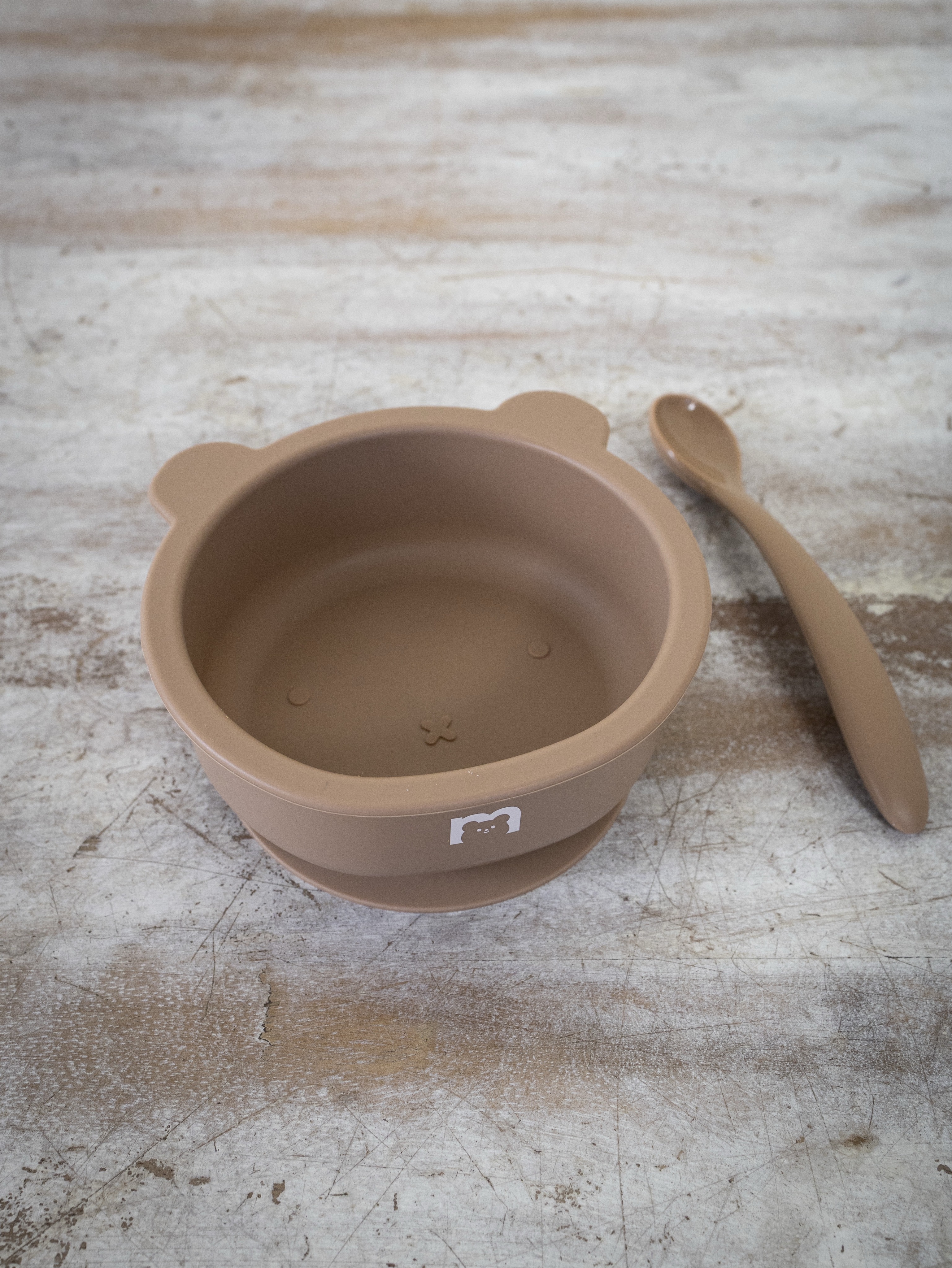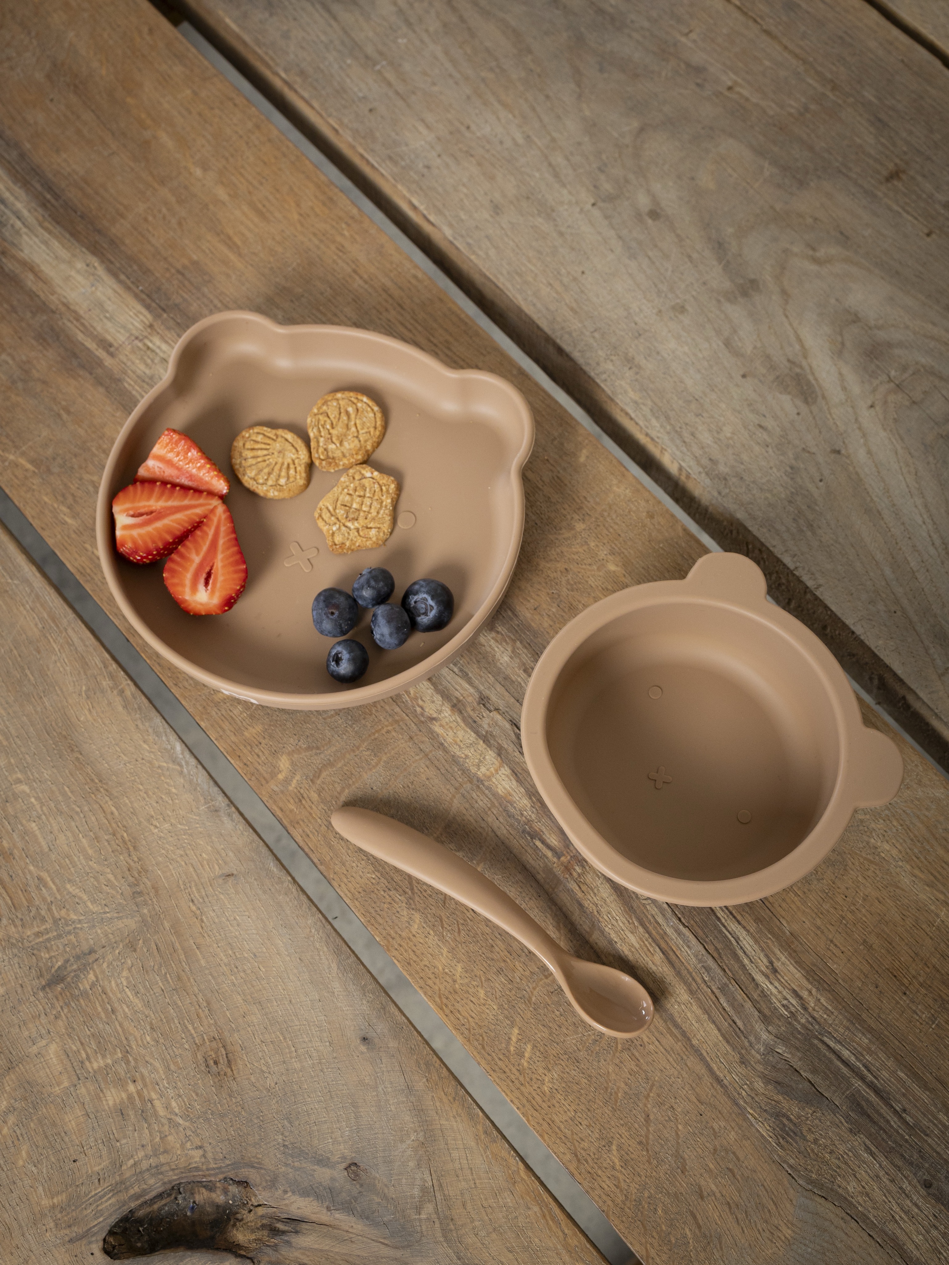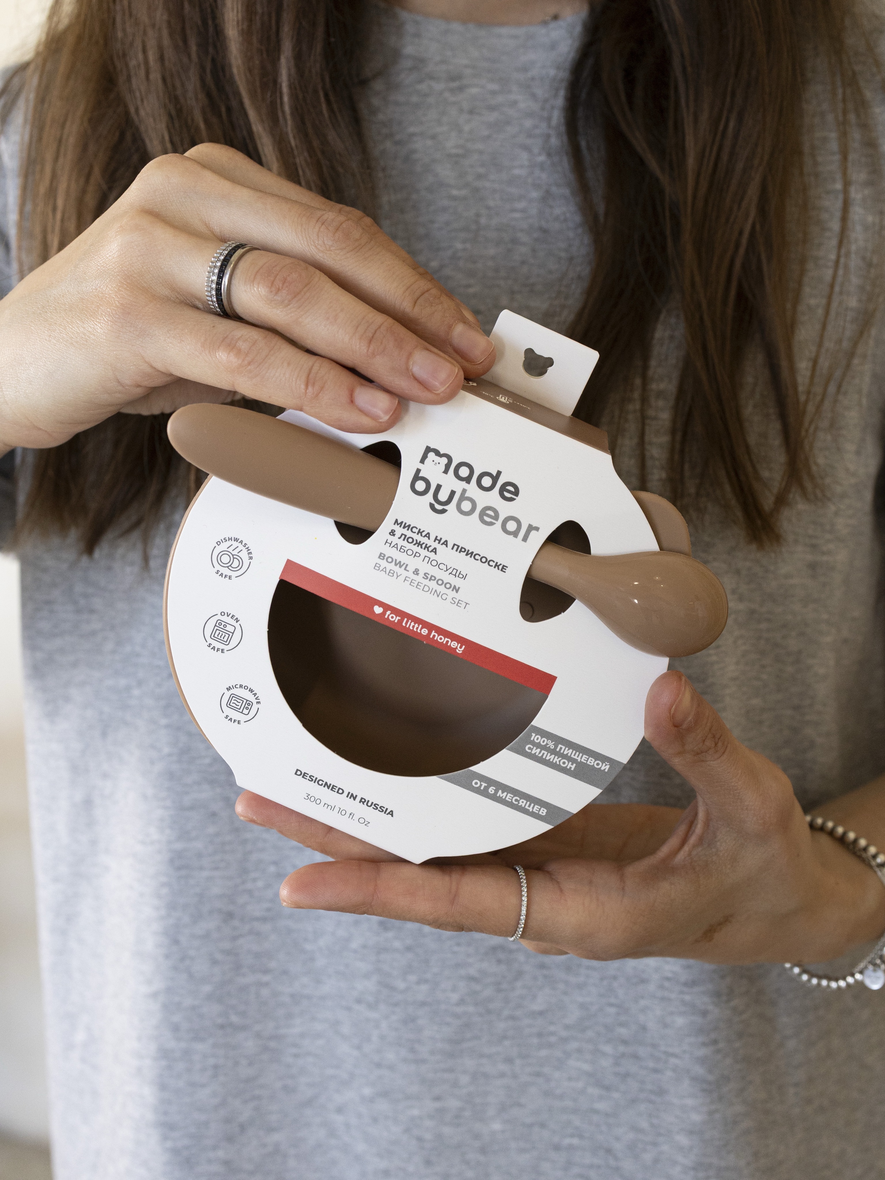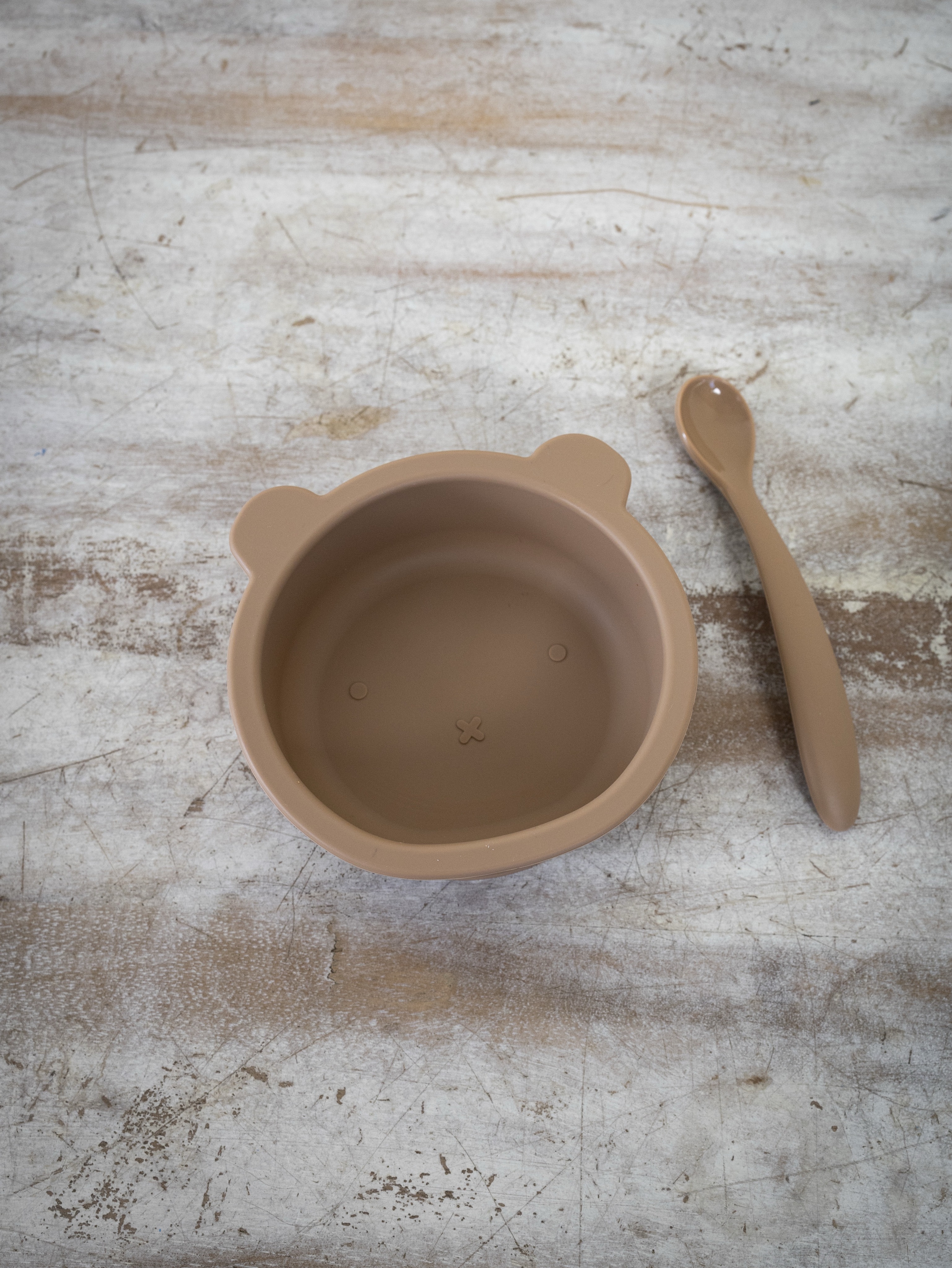 Набор посуды для детей - миска и ложка Мишка, Hazelnut