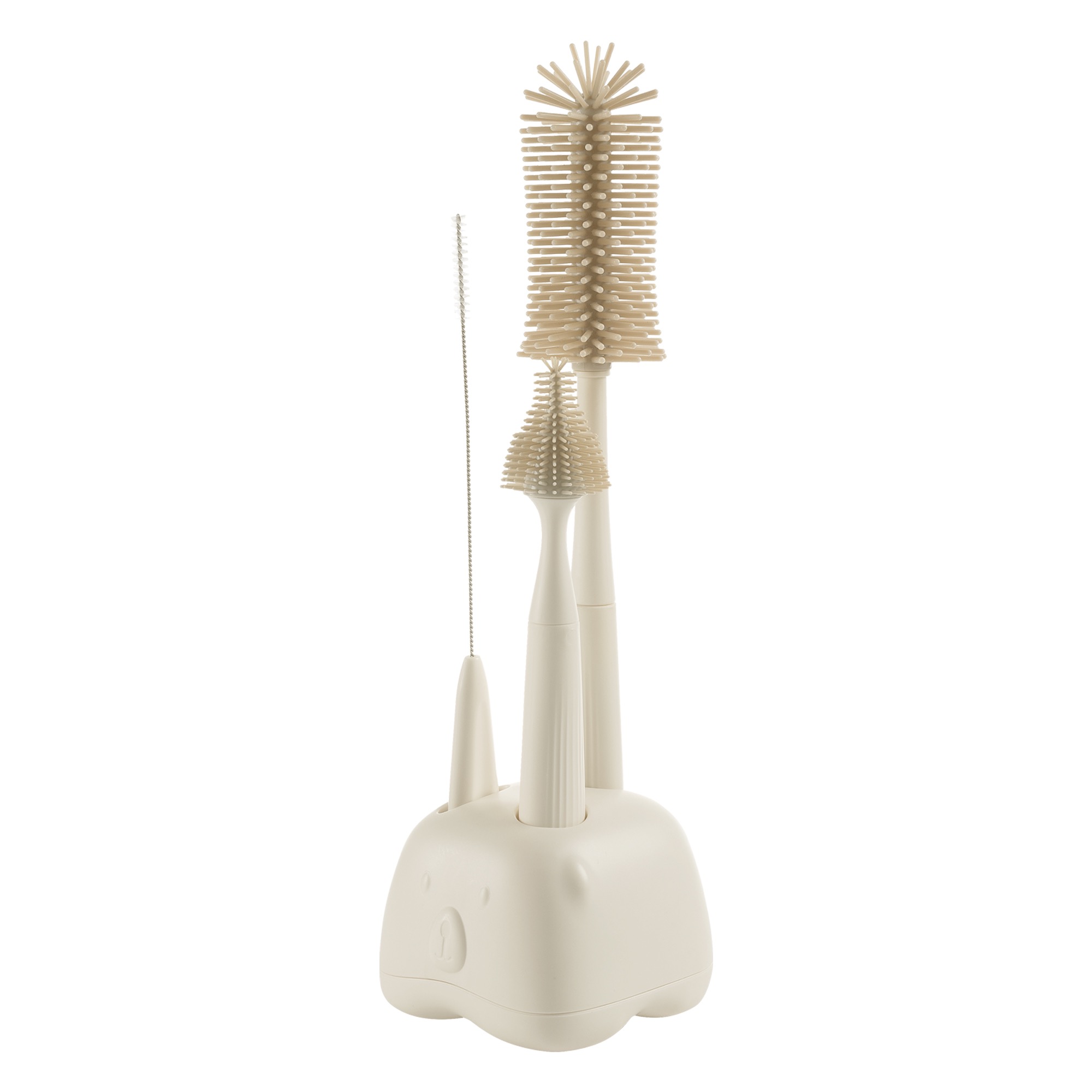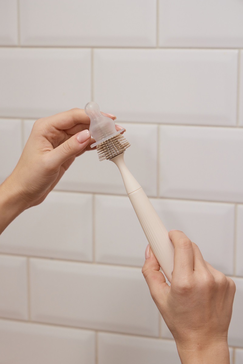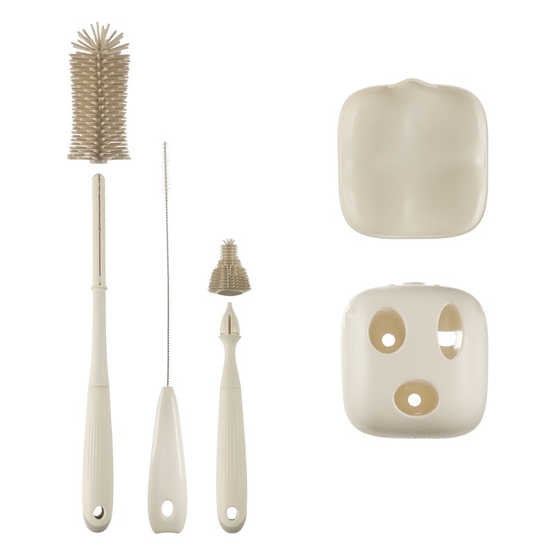 Щетинки из безопасного пищевого силикона деликатны к посуде, сохраняя её целостность. Они плавно двигаются и предотвращают появление микротрещин и размножение бактерий. Рельефная ручка ёршиков эргономична для комфорта во время мытья. Набор гармонично встраивается в стилистику современного дома. Ёршики можно мыть в посудомоечной машине и стерилизовать. Благодаря такому продуманному уходу посуда вашего малыша прослужит дольше.