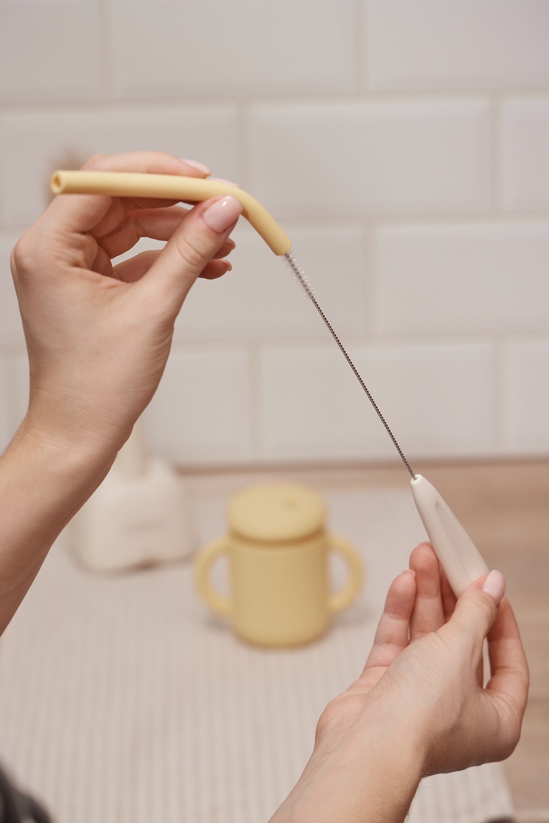 - Гибкая и тонкая щёточка легко отмывает трубочки по всей длине.