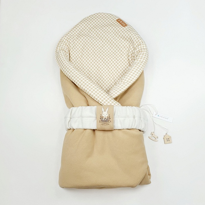 Стильный и практичный конверт, предназначенный для выписки из роддома и первых прогулок. Модель выполнена в спокойной бежевой гамме с внутренней отделкой в мелкую клетку.