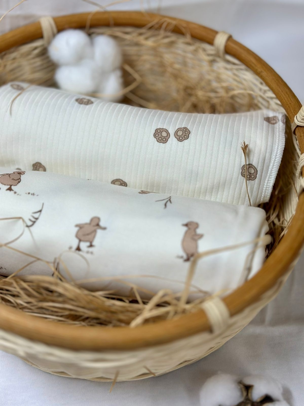 Пеленка выполнена из 100% хлопка (интерлок пенье).