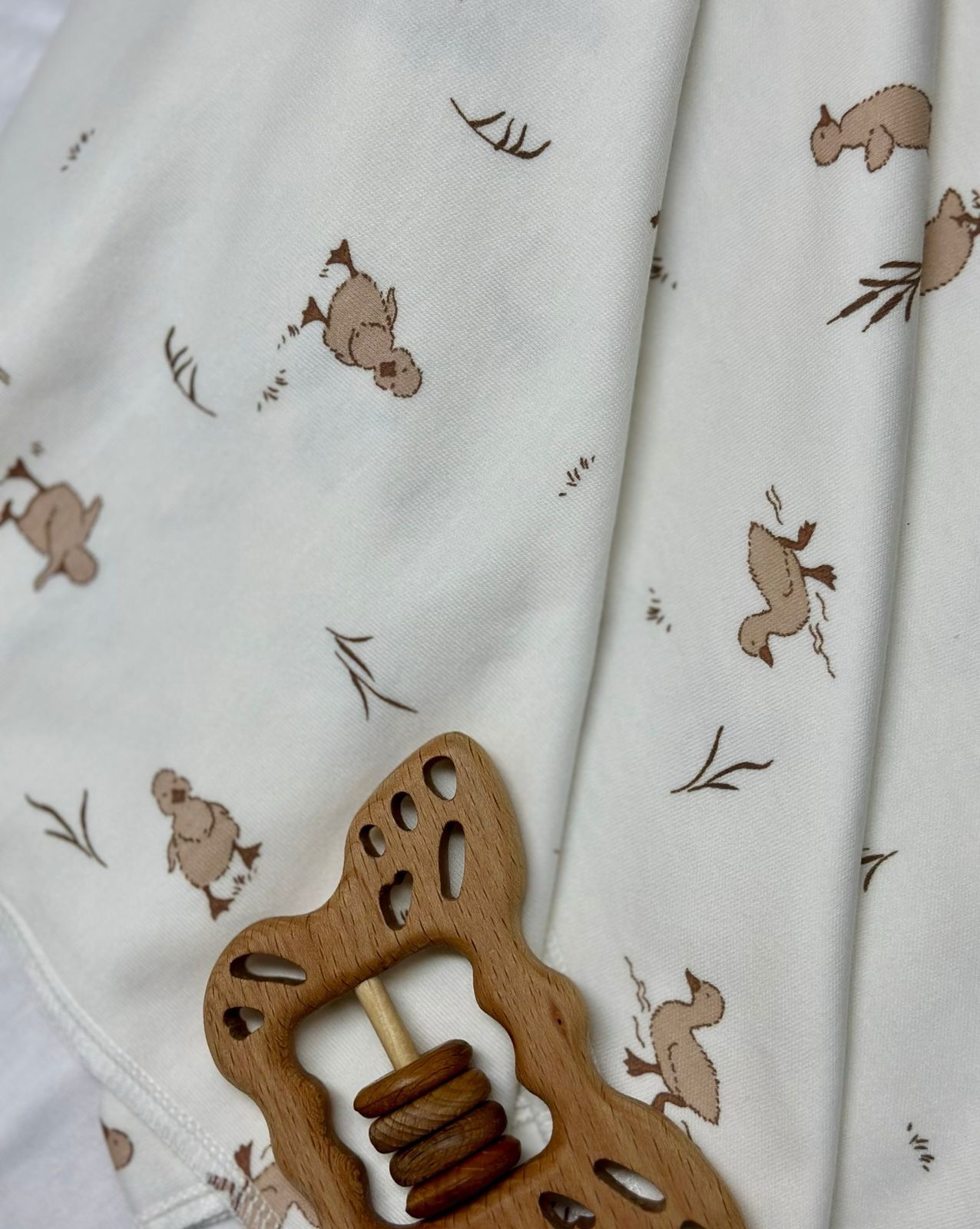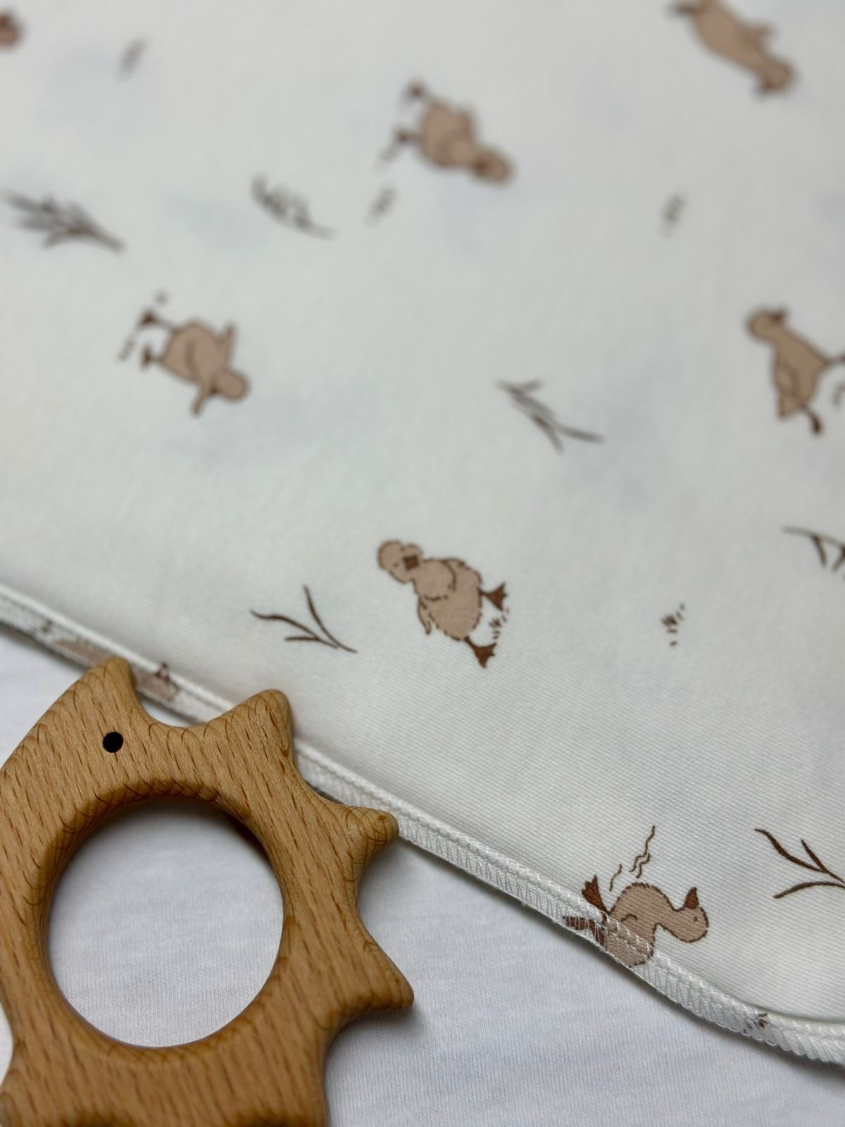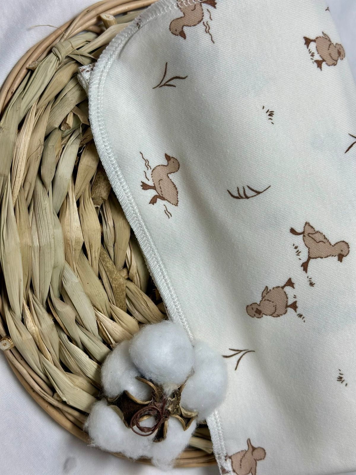 Пеленка выполнена из 100% хлопка (интерлок пенье).