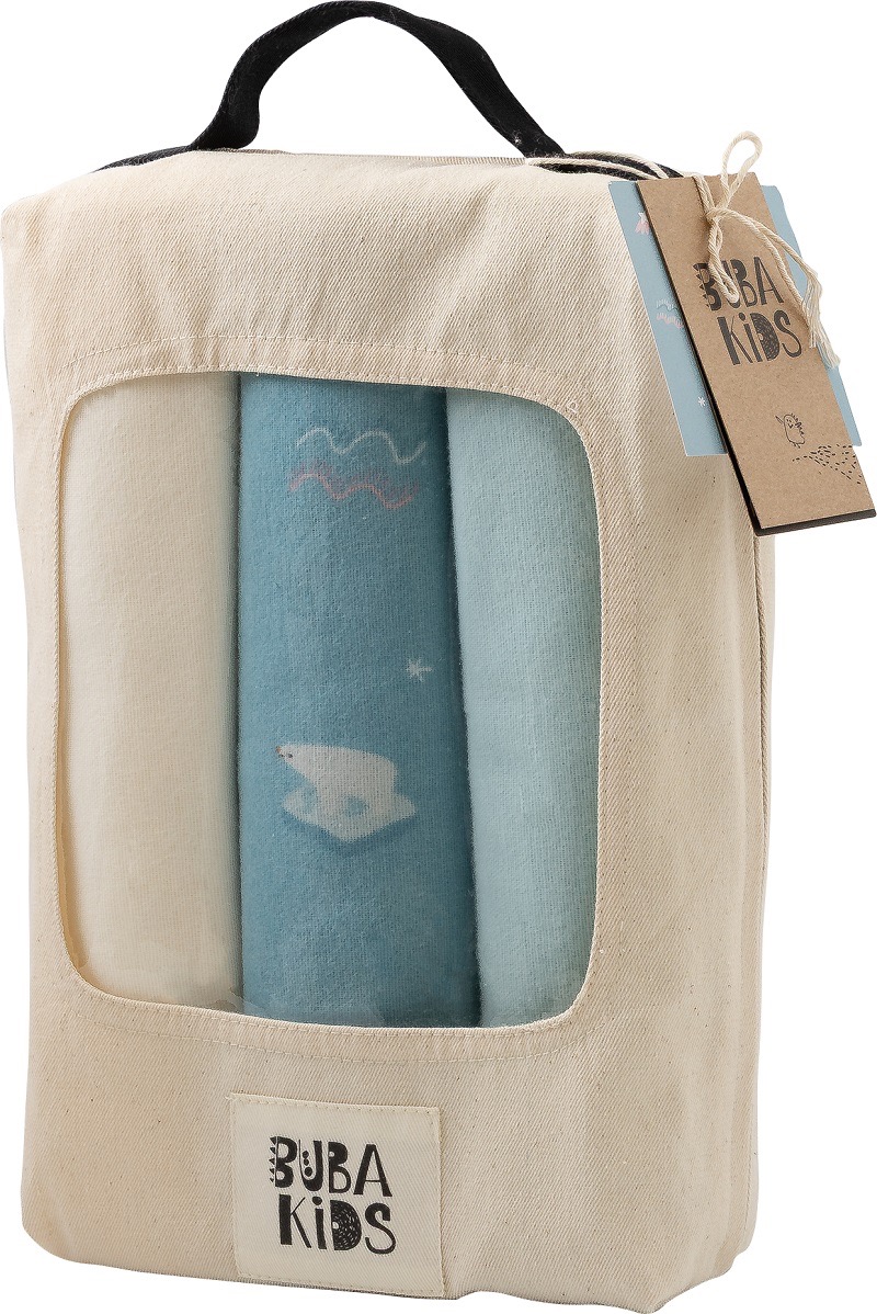 Пелёнки фланелевые BUBA KIDS, 3 шт., Русская Арктика/Сливочный/Бирюза, 95х115