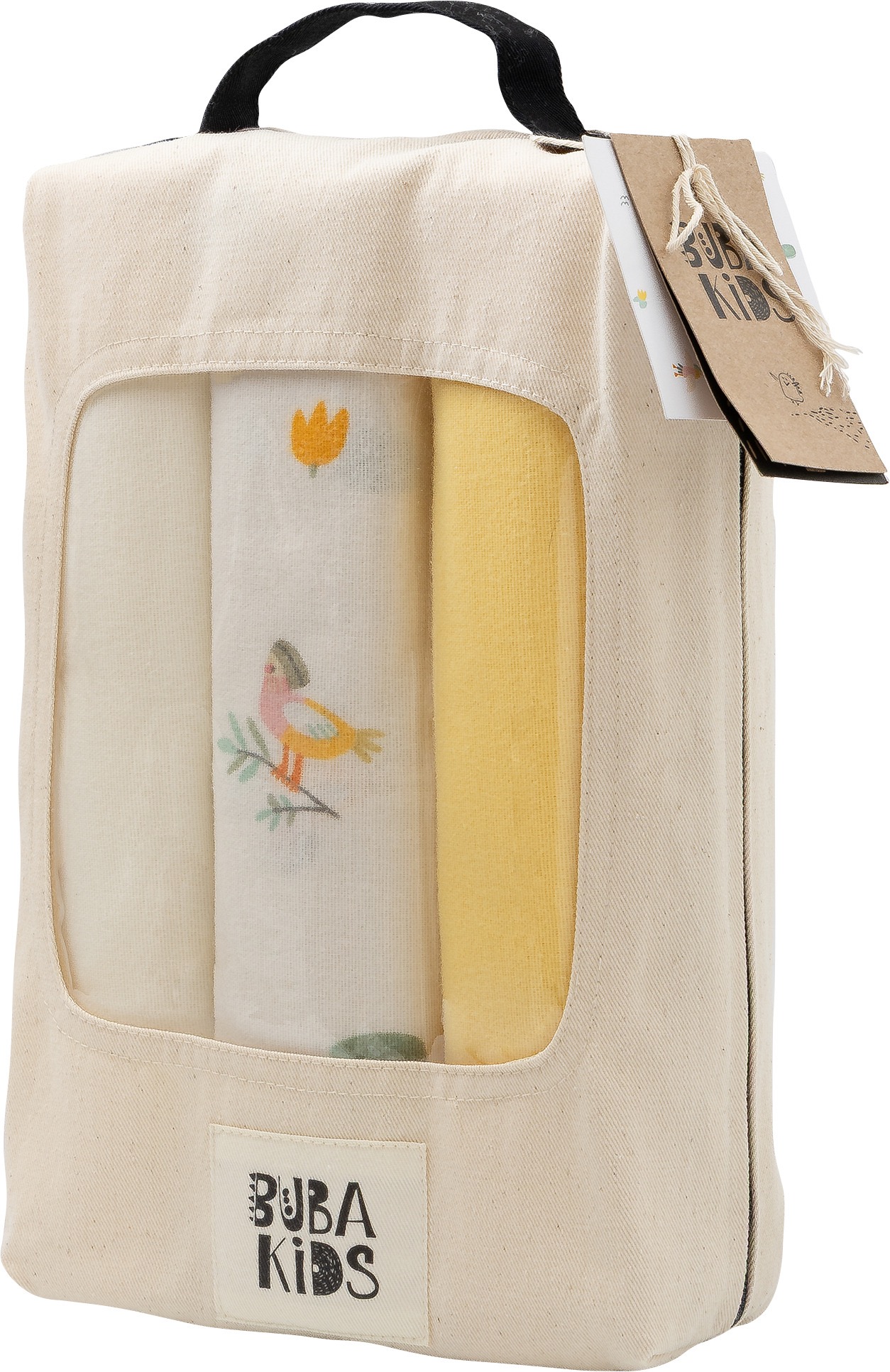 Пелёнки оригинально и красиво упакованы, и могут послужить отличным подарком. Практичный чехол-сумочка на молнии выполнен из 100% хлопка – саржи. Окошко демонстрирует цвет и принт. Набор состоит из пелёнки с рисунком и двух однотонных.