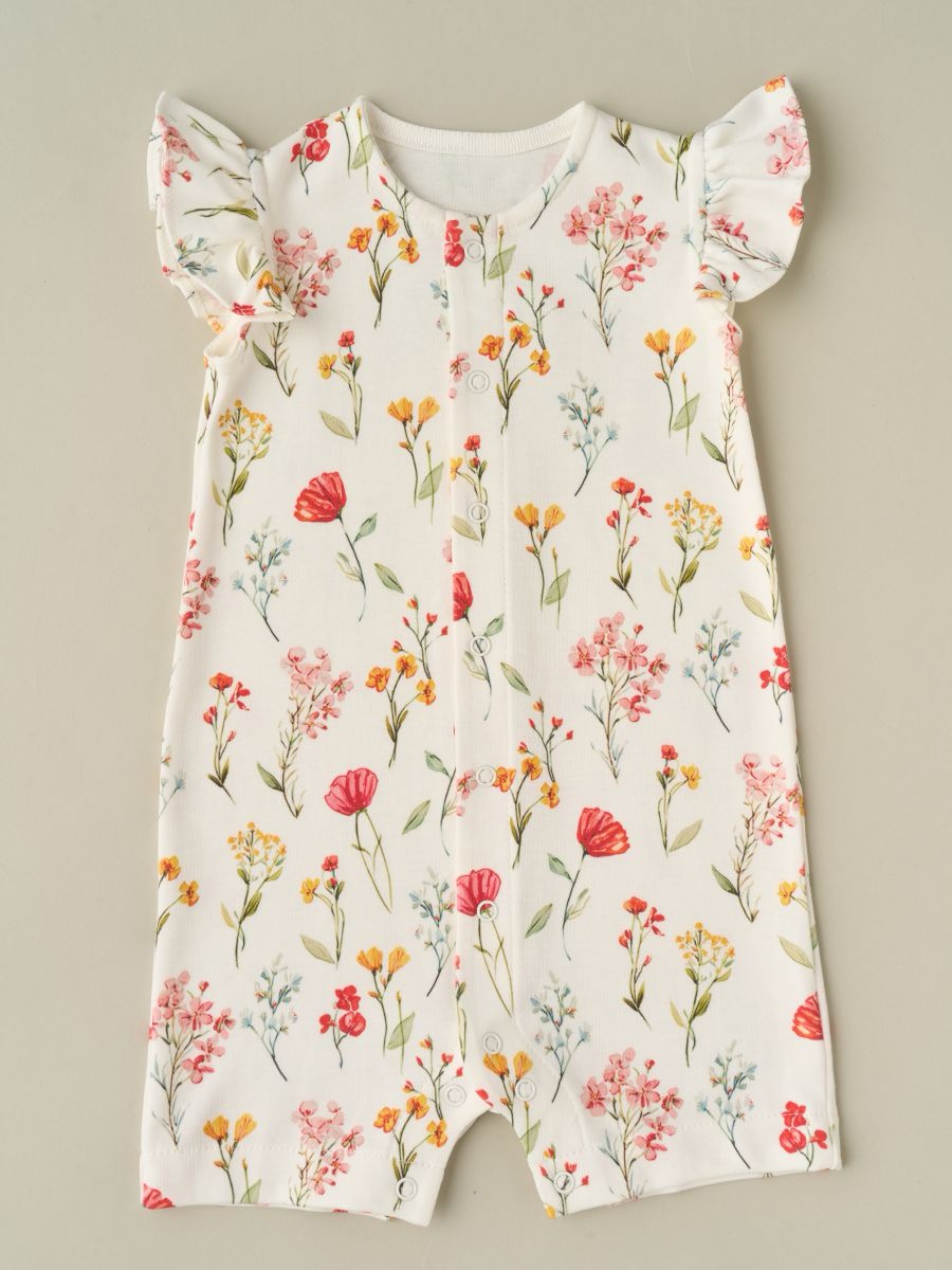 Трикотажный песочник для девочки, 100% хлопок с очаровательными рукавами-крылышками и застёжкой на кнопки по всей длине спереди. Натуральный мягкий трикотаж «дышит», быстро впитывает влагу и подходит для ежедневной носки дома, на прогулке и в поездках. Для этого артикула доступно много разных рисунков: аккуратный принт впечатан в ткань, не боится утюга, выдерживает множество стирок и не выцветает. В размере 62 выполнены швы наружу для максимального комфорта новорождённой кожи; с 68 по 92 размеры — швы внутри в классическом исполнении. Удобные кнопки между ножками помогают быстро сменить подгузник, свободный силуэт не стесняет движения. Ищете милый летний комбинезон для девочки из хлопка? Это удачный выбор как на каждый день, так и в подарок новорождённой.