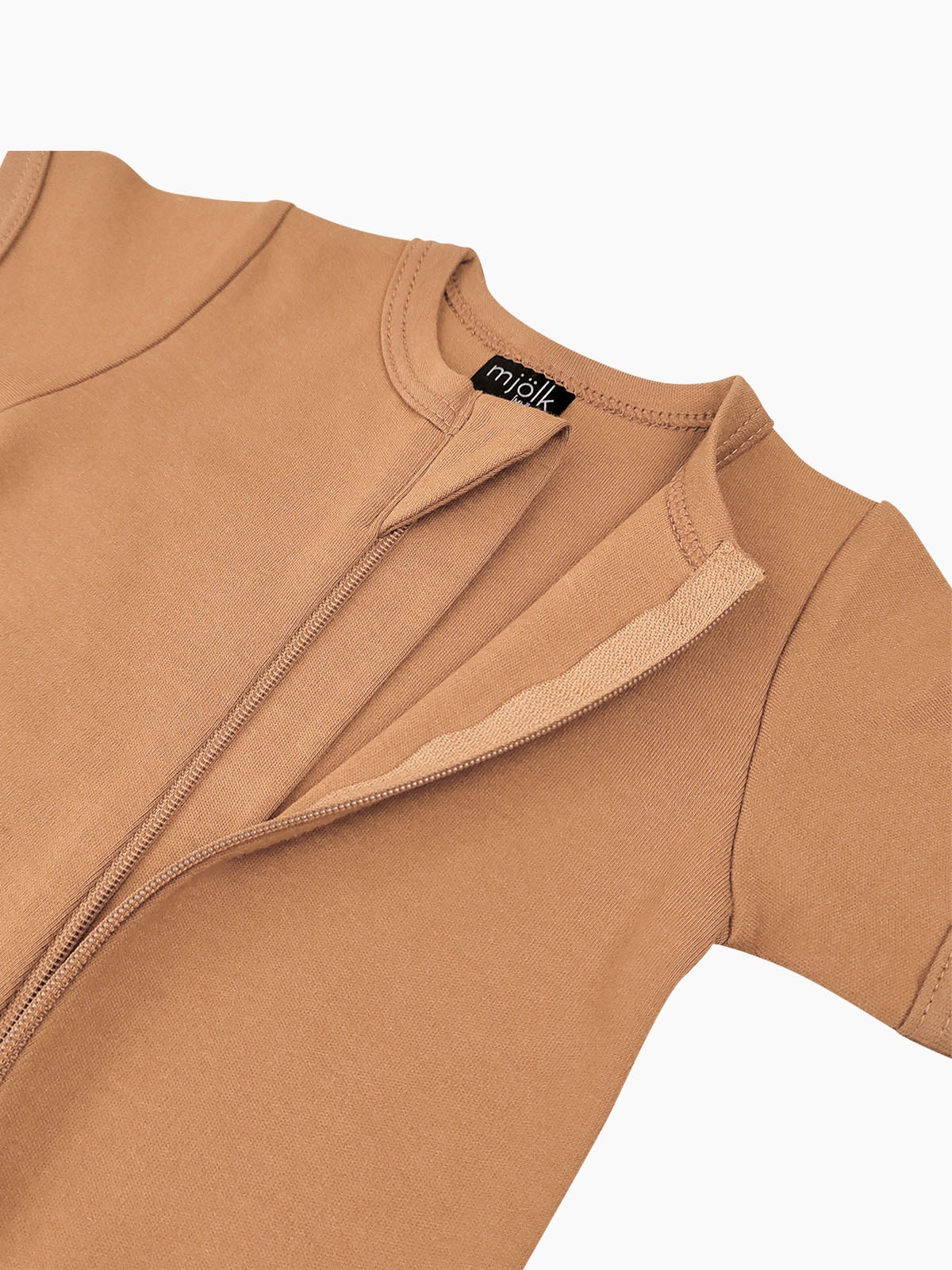 Молния изнутри защищена планкой, поэтому не соприкасается с нежной кожей малыша, а на вороте у шеи дополнительно нашит трикотажный язычок. Он закрывает бегунок и не даёт застёжке раскрыться.