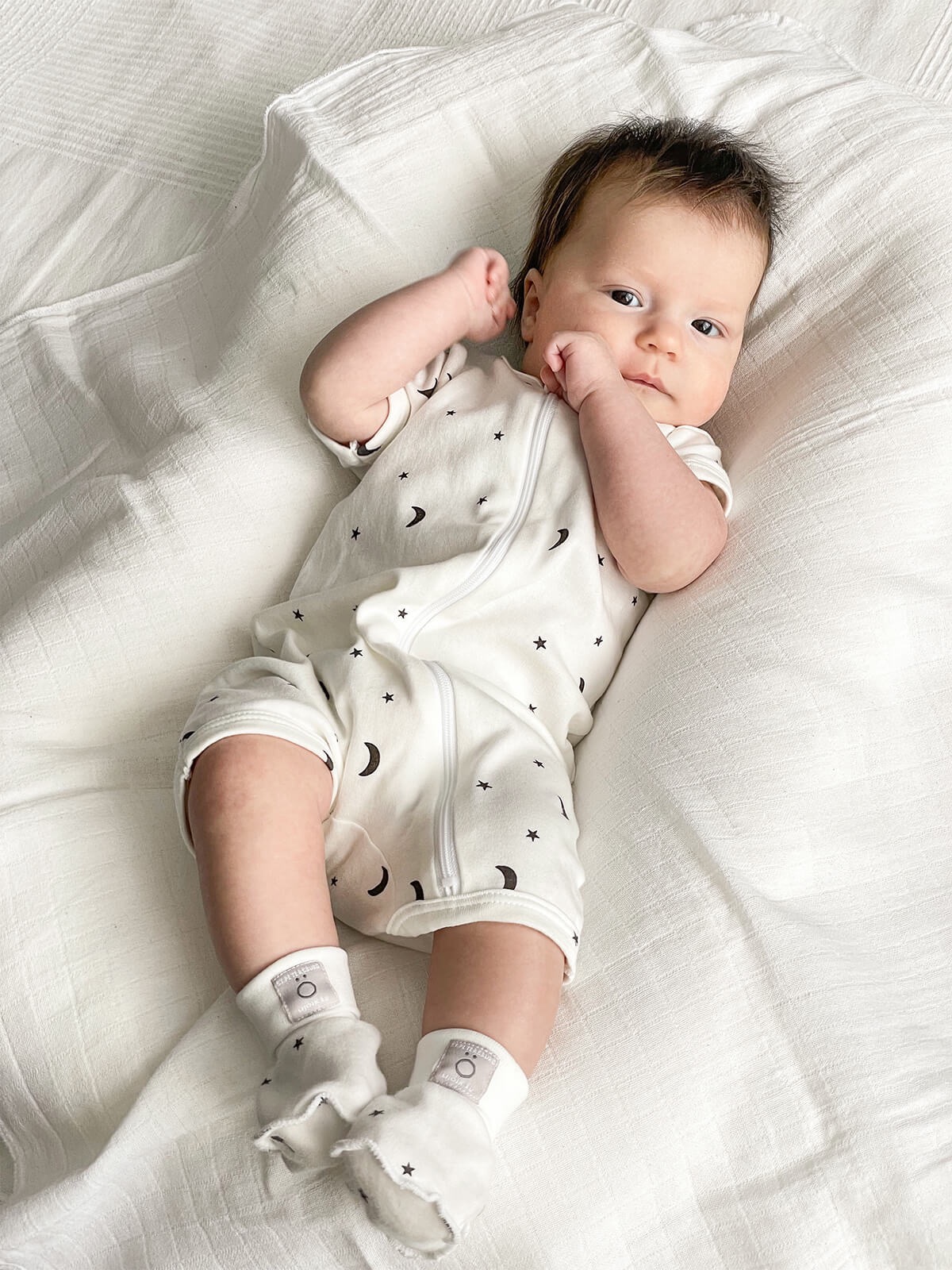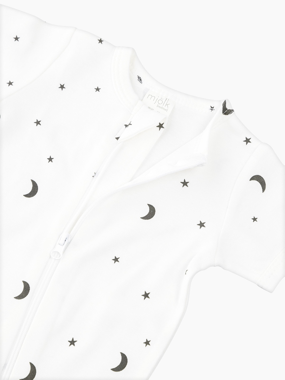 Молния изнутри защищена планкой, поэтому не соприкасается с нежной кожей малыша, а на вороте у шеи дополнительно нашит трикотажный язычок. Он закрывает бегунок и не даёт застёжке раскрыться.