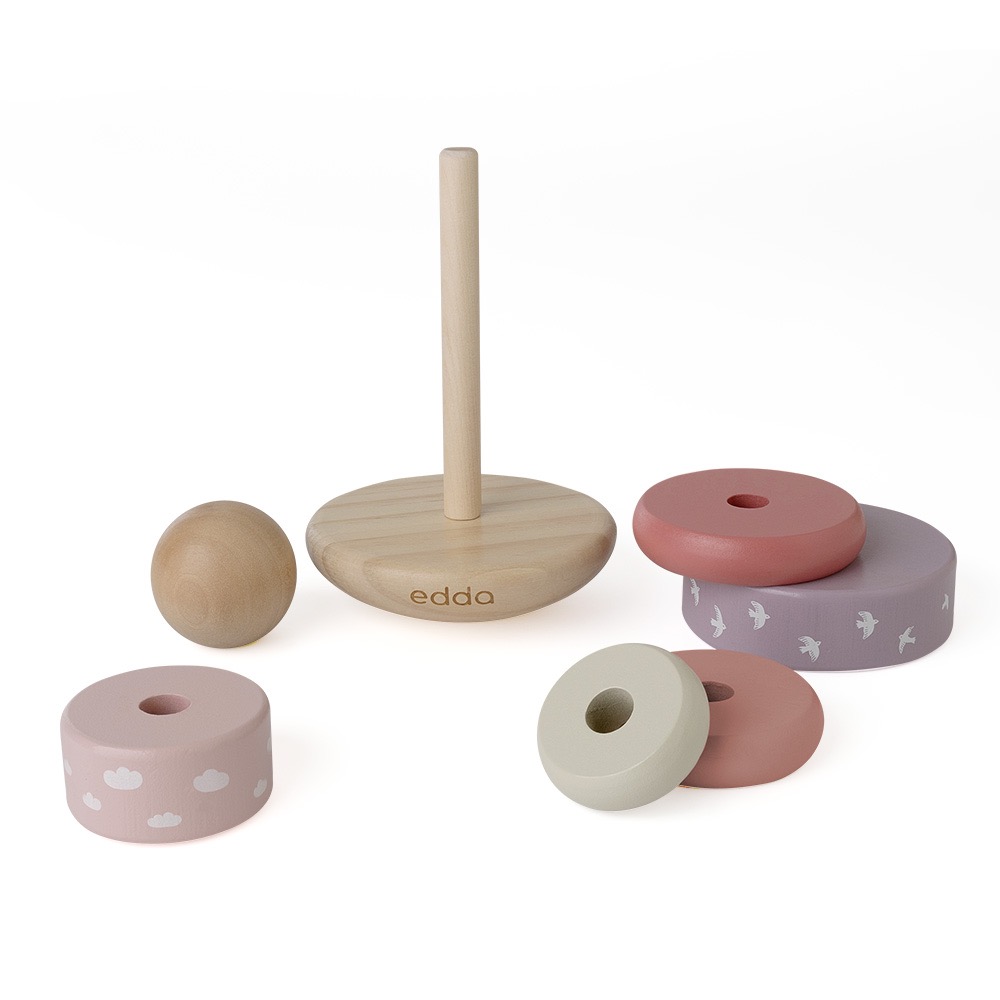 Деревянная пирамидка edda — это эстетика и лаконичный дизайн, сочетающий простые формы и спокойные цвета. Игрушка устойчива в статике, покачивается при небольшом наклоне и возвращается в исходное положение, поэтому малышу весело играть с ней снова и снова. Пирамидка в нежных оттенках помогает малышу развивать координацию, учиться сочетать цвета и органично дополняет интерьер. edda — это поэзия современного детства, где хороший вкус прививается с первых дней жизни.