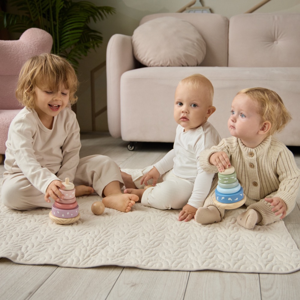 • Удобство для малышей — кольца идеально подходят для захвата маленькими ручками, способствуя развитию моторики.