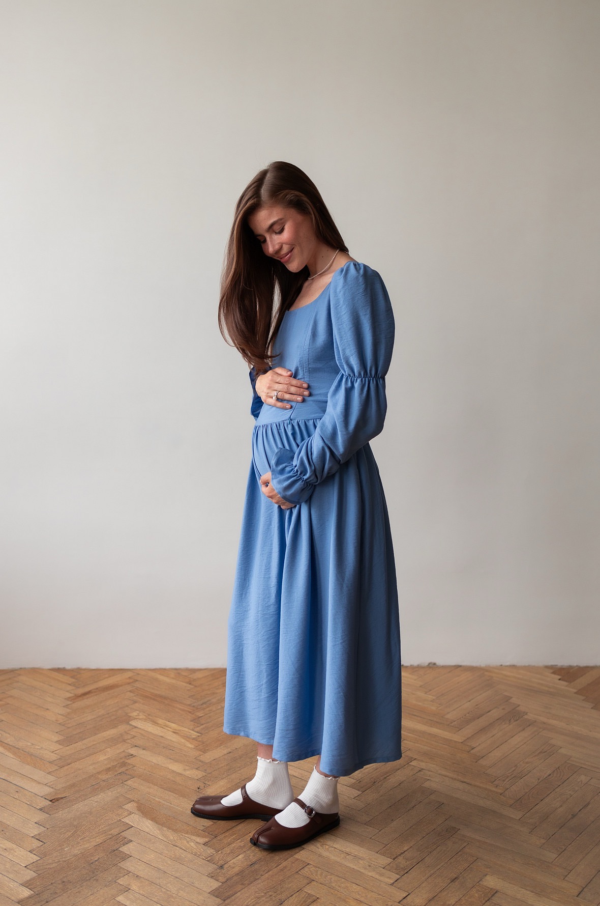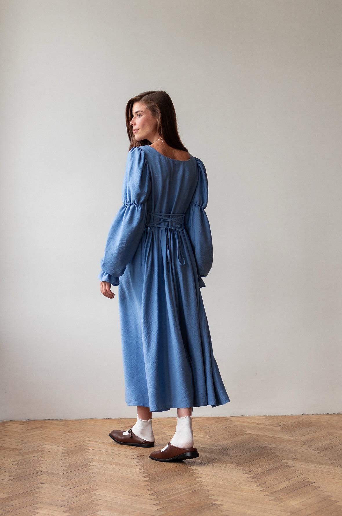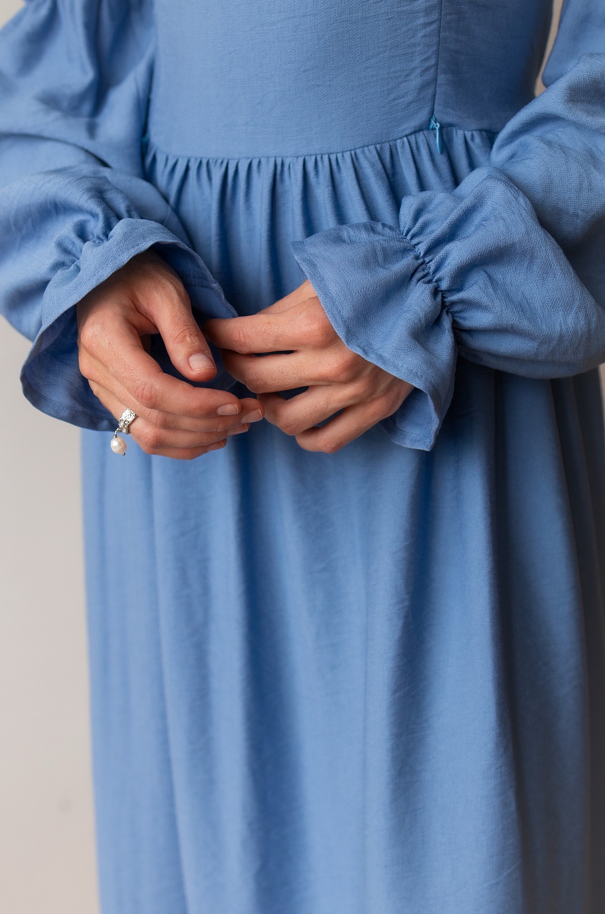 Почувствуйте себя героиней романов Джейн Остен. Необыкновенно красивое платье в романтическом стиле. Изящные рукава, мягкий овальный вырез и восхитительная шнуровка на спине, благодаря которой вы можете регулировать силуэт подчеркивая талию. Платье также подойдет на беременный животик.