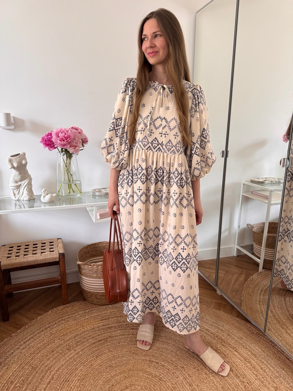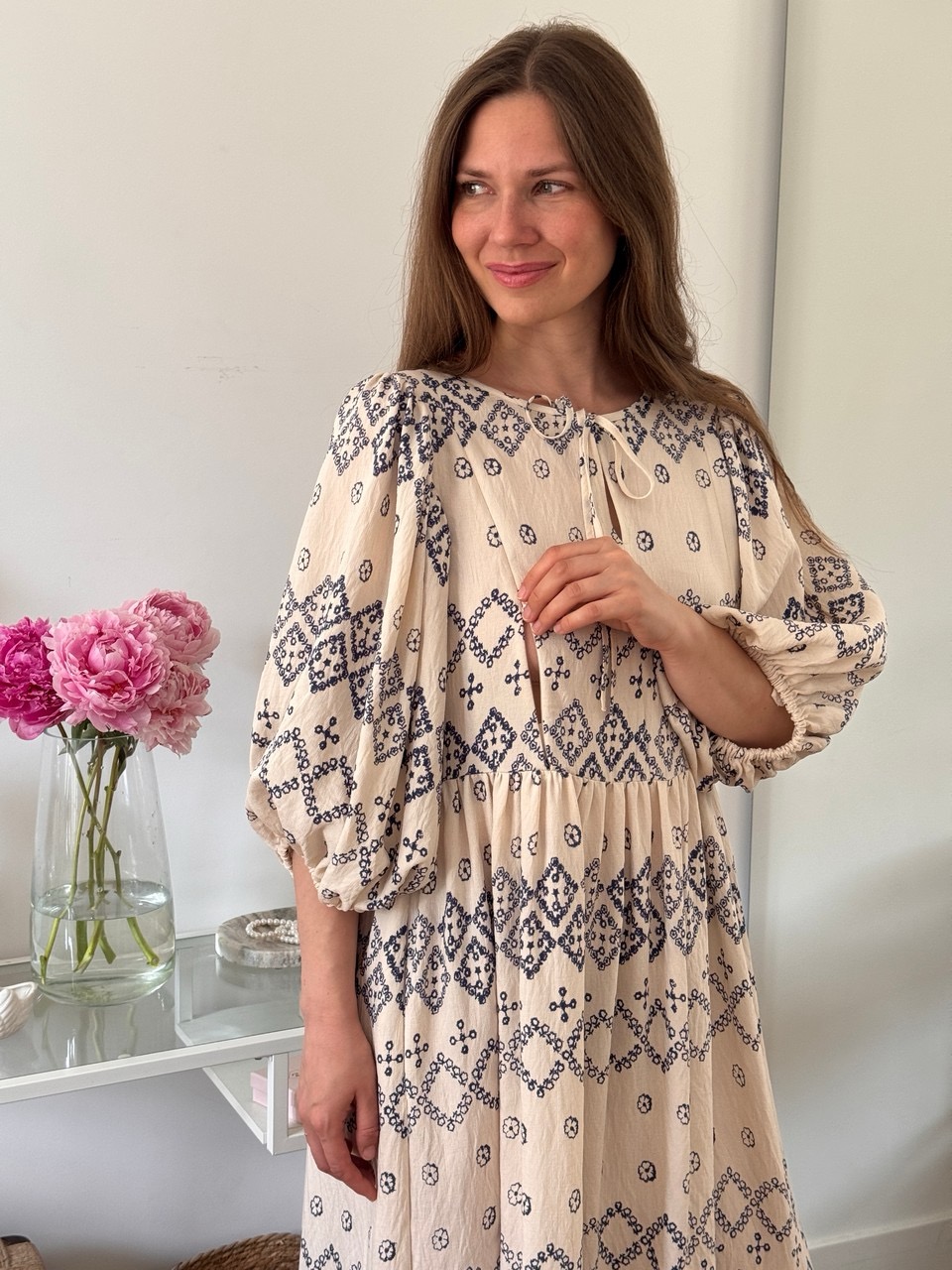 Потрясающее платье в длине миди с секретами для кормления. Натуральная воздушная вискоза - один из самых лучших материалов на лето. Необычные объёмные рукава - тренд ближайших сезонов - делают платье особенно эффектным. В этом платье вы без труда сможете покормить малыша, где бы вы не находились. Удобные секреты в виде молний вшиты в рельефы платья и совершенно незаметны. Платье прекрасно подойдет как на каждый день, так и для особого случая.