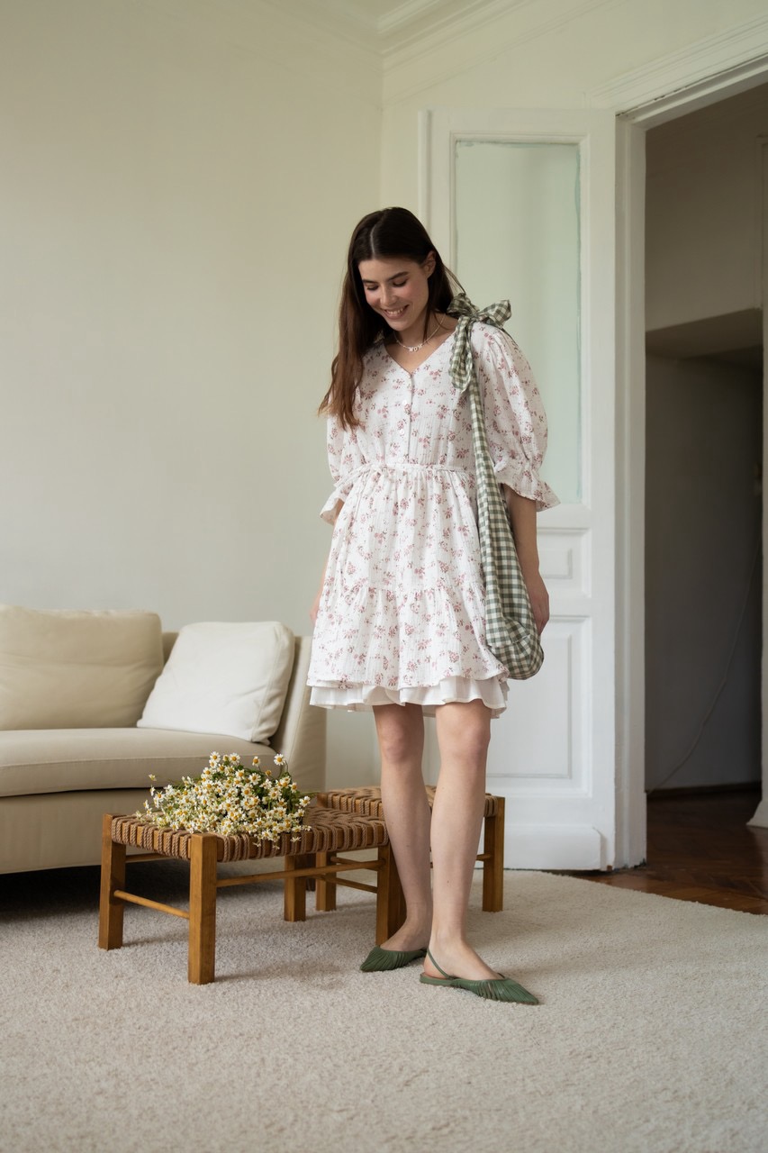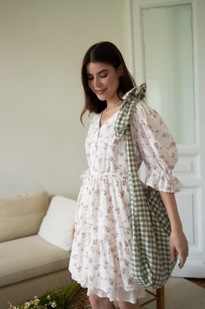 Нежное и женственное платье из невесомого муслина. Комфортная летом длина мини, воздушные рукава, легкий подъюбник вшитый в линию талии - всё в этом платье подчеркнет вашу красоту и женственность. Платье подходит на беременность, а также для комфортного и незаметного кормления малыша грудью, благодаря скрытым молниям в рельефах. В комплекте идет тонкий поясок, благодаря которому вы можете, при желании, подчеркнуть талию. В нашем разделе for you вы найдете ассортимент без молний. А дополнить платье стильным аксессуаром - воротничком или шопером можно в разделе аксессуары.