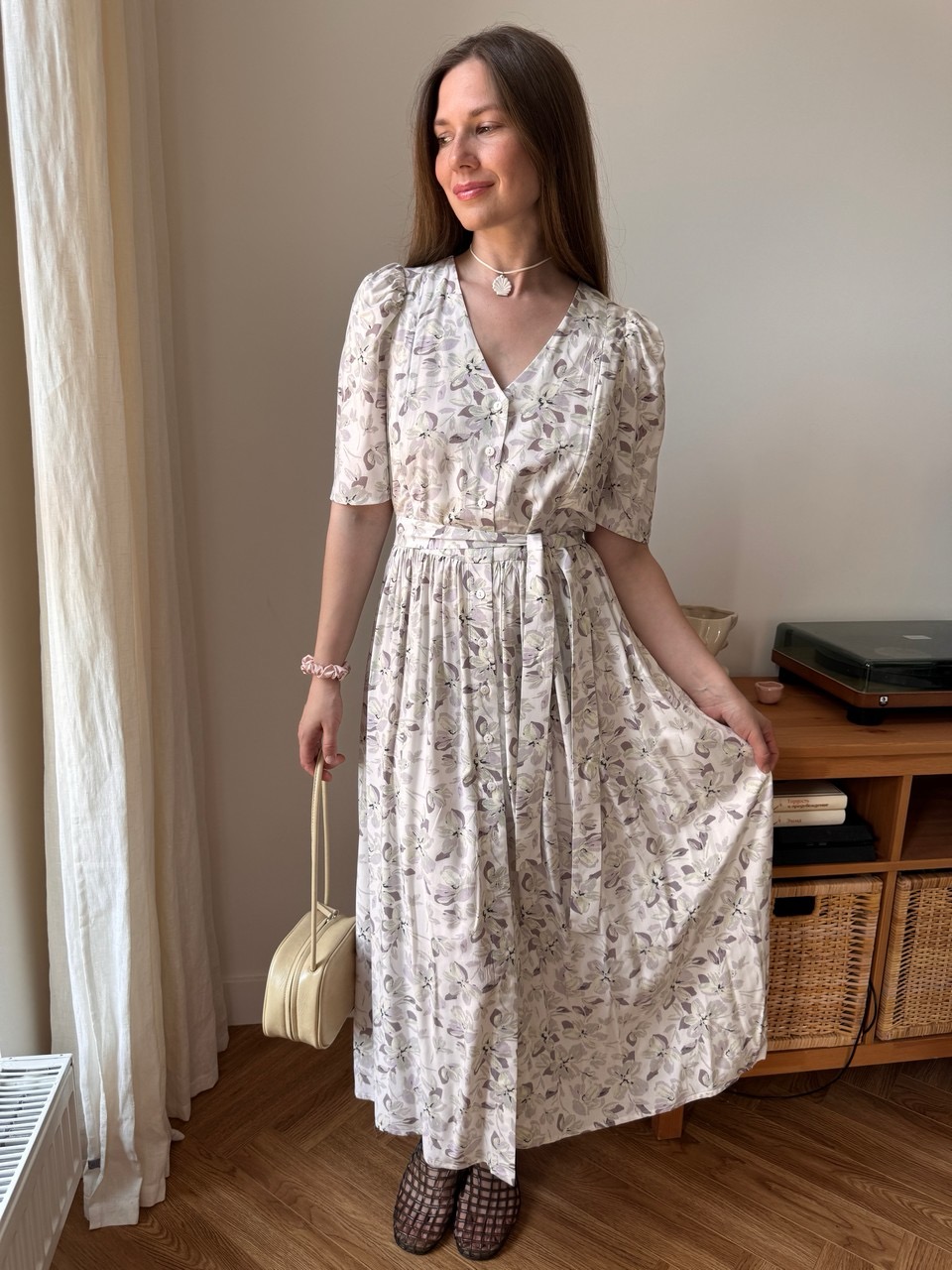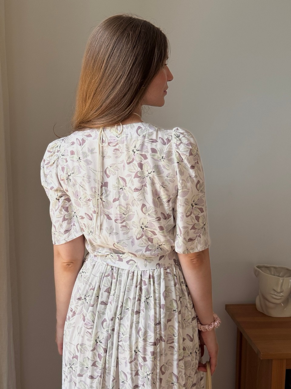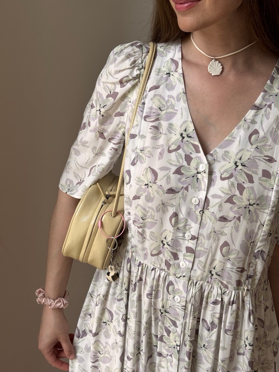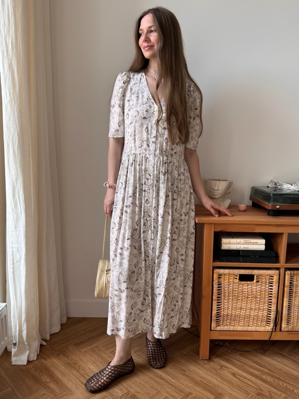 Параметры модели: Рост 170, грудь 84, талия 60, бедра 90, на модели платье в размере 42. Параметры модели изделий в цвете Синий с белыми цветами, Пудровый с розовыми цветами, Мятный с фрезиями, Айвори с акварельными цветами: Грудь 88 см, талия 65 см, бедра 92 см, рост 171 см, На модели изделие в размере 44.
