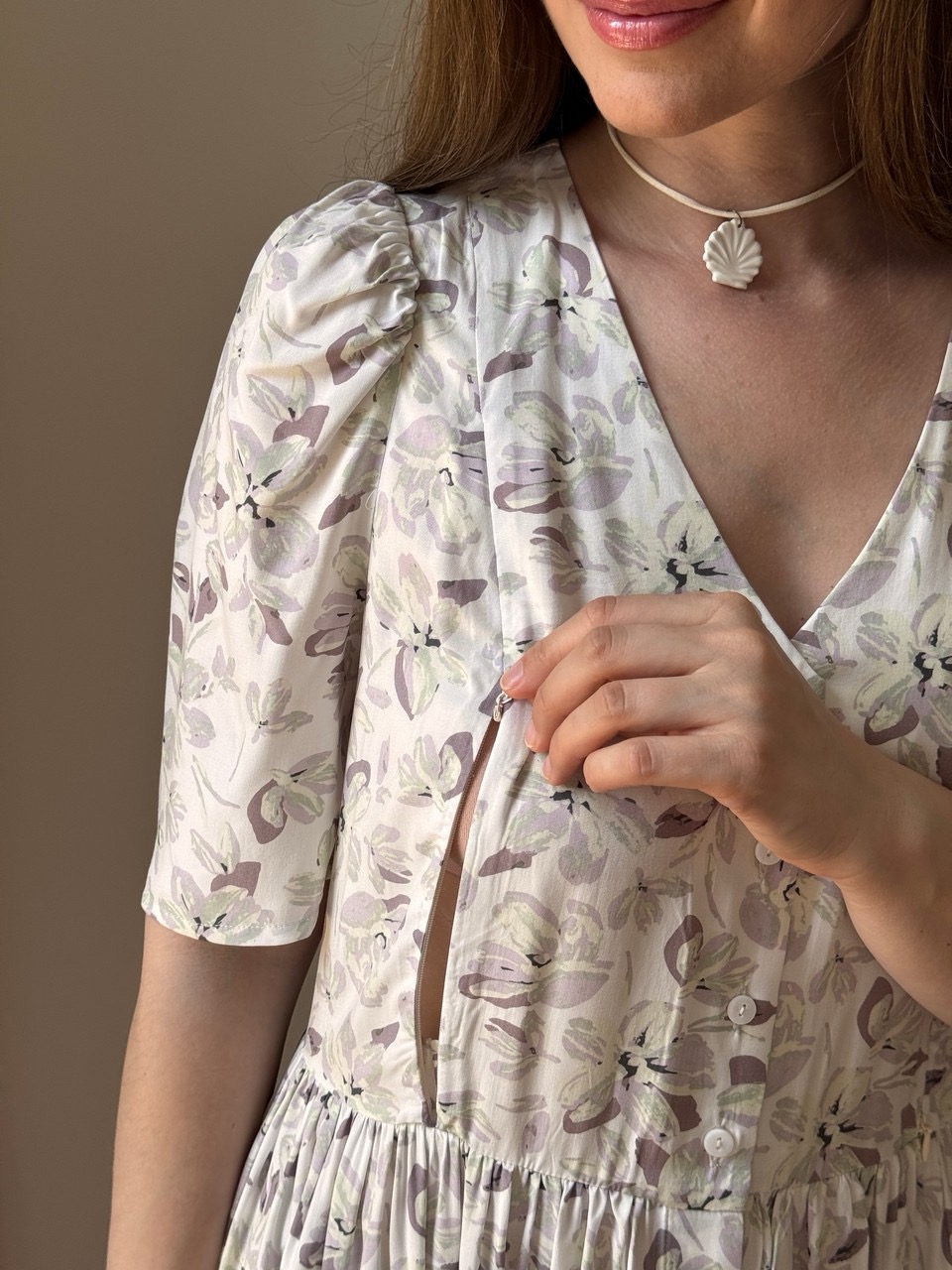 Платье Шарлотта для беременных и кормящих, Айвори с акварельными цветами