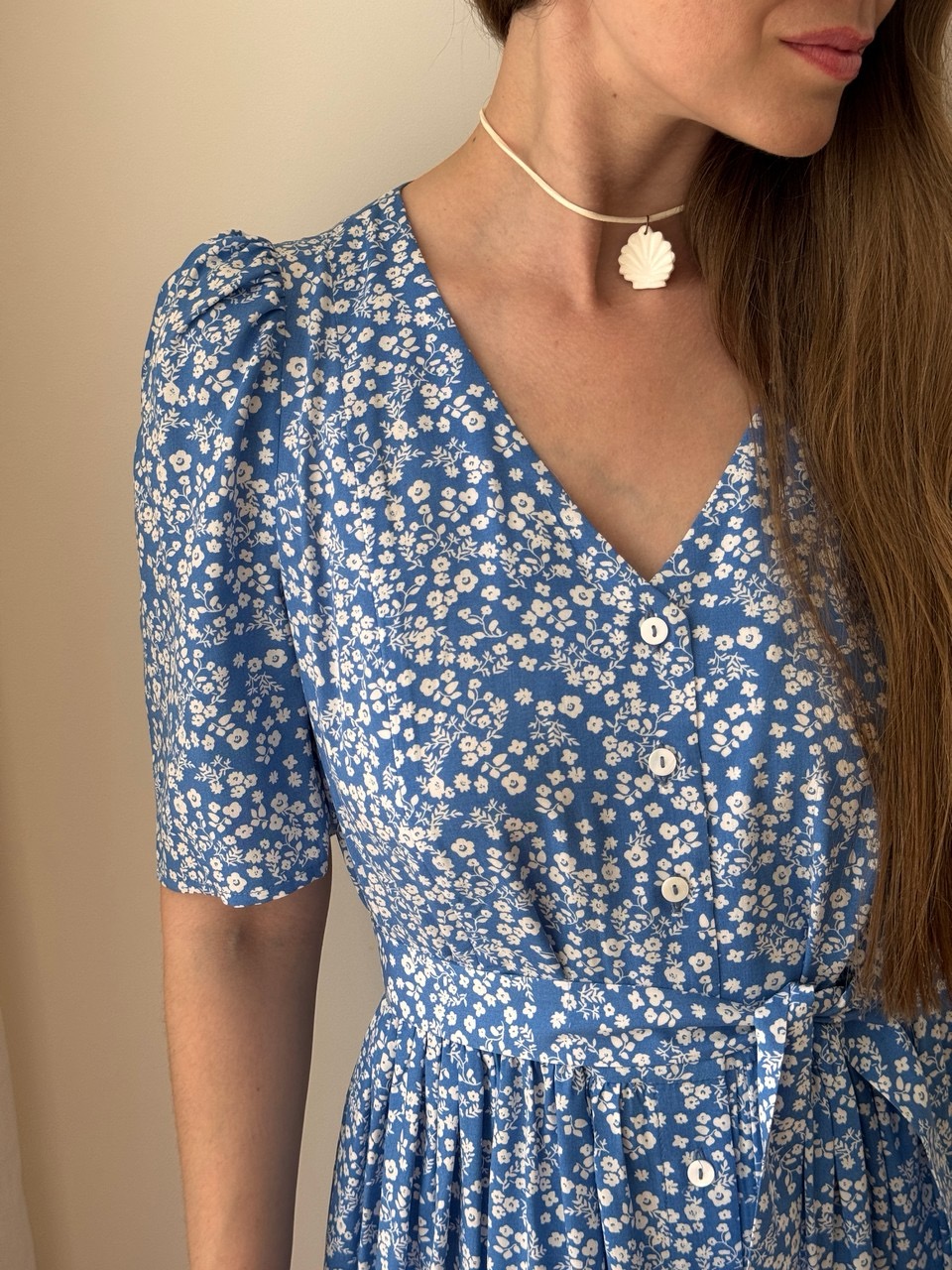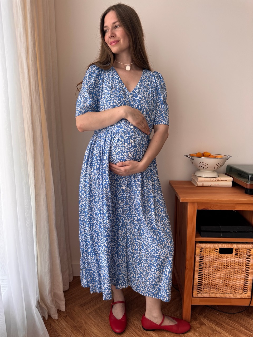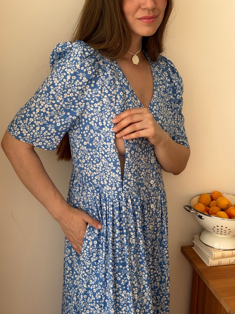 Платье Шарлотта для беременных и кормящих, Синий с белыми цветами