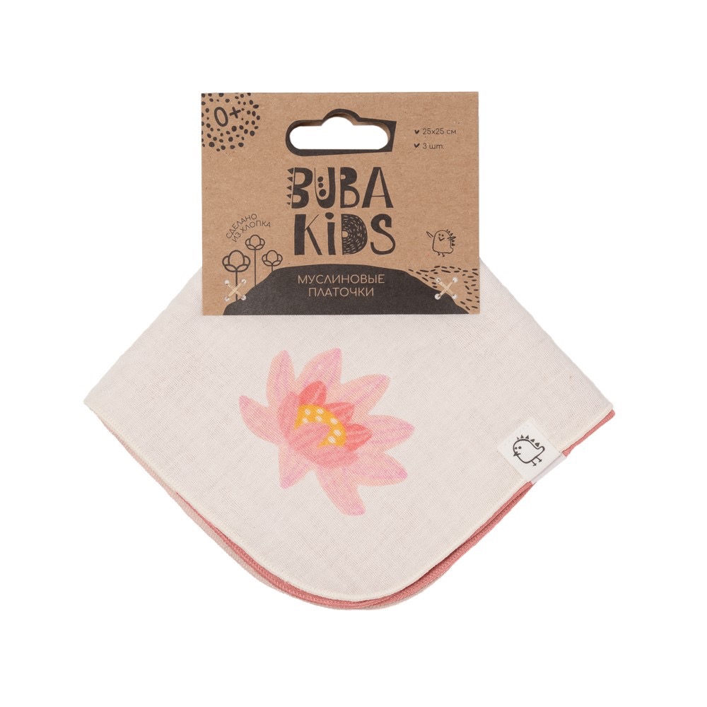 Муслиновые платочки представлены наборами по три штуки в разных цветовых сочетаниях, подходят к панамкам и пеленкам BUBA KIDS.