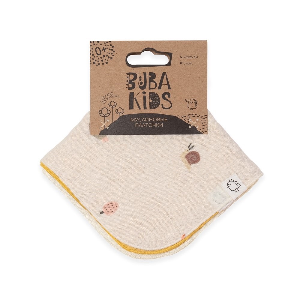 Платочки муслиновые BUBA KIDS, 3 шт., Заповедный лес/ горчица/ миндаль