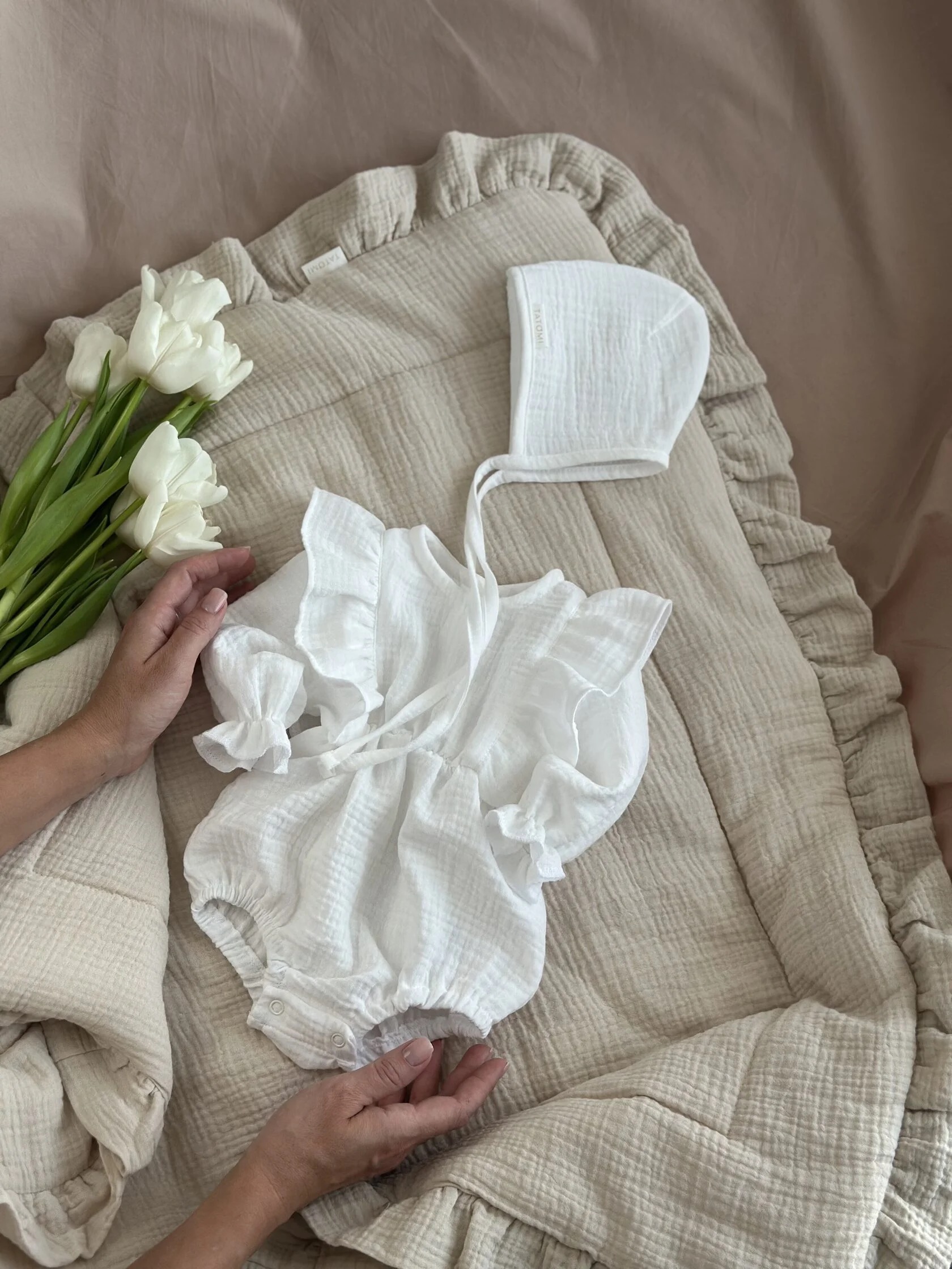 Плед из муслина с рюшами, Бежевый