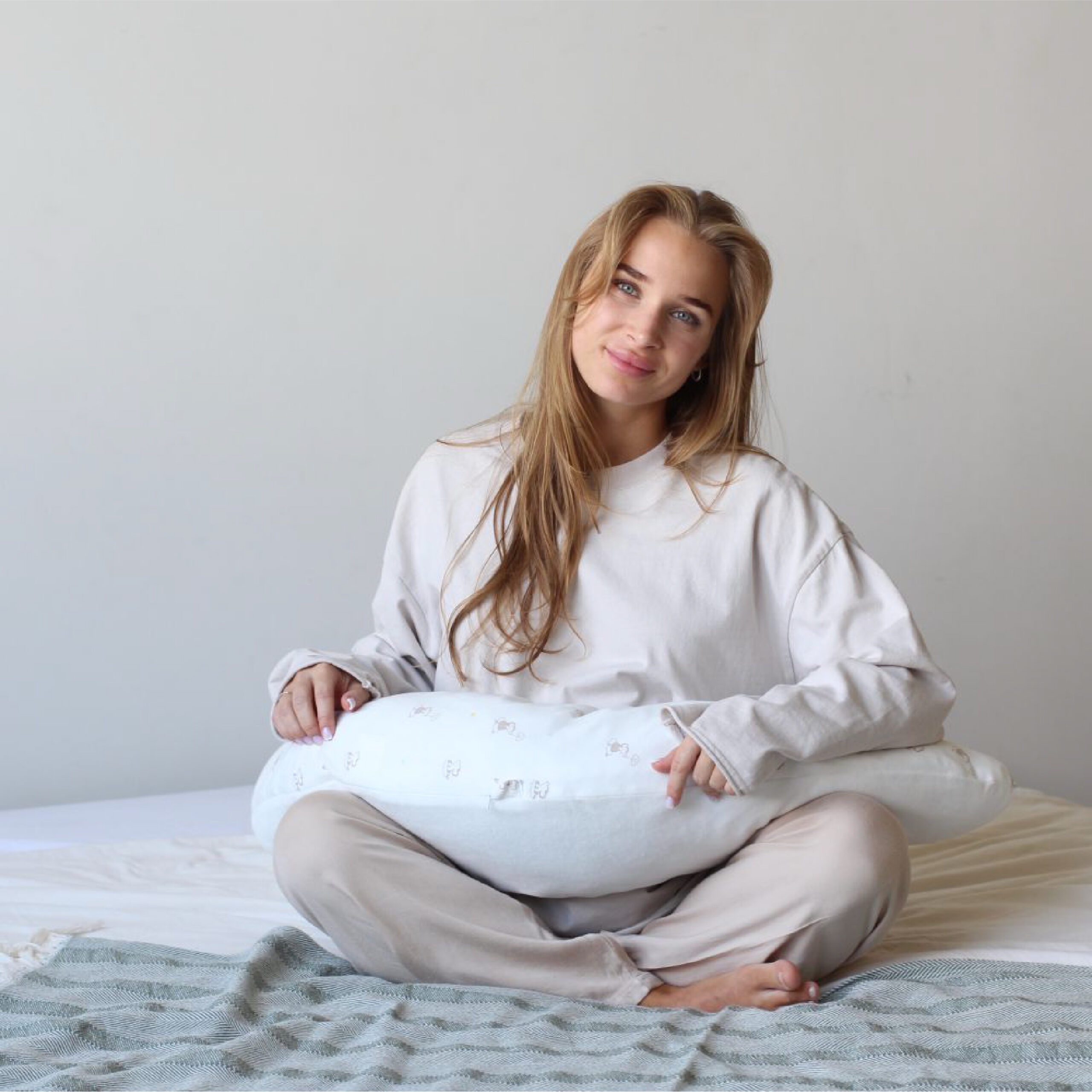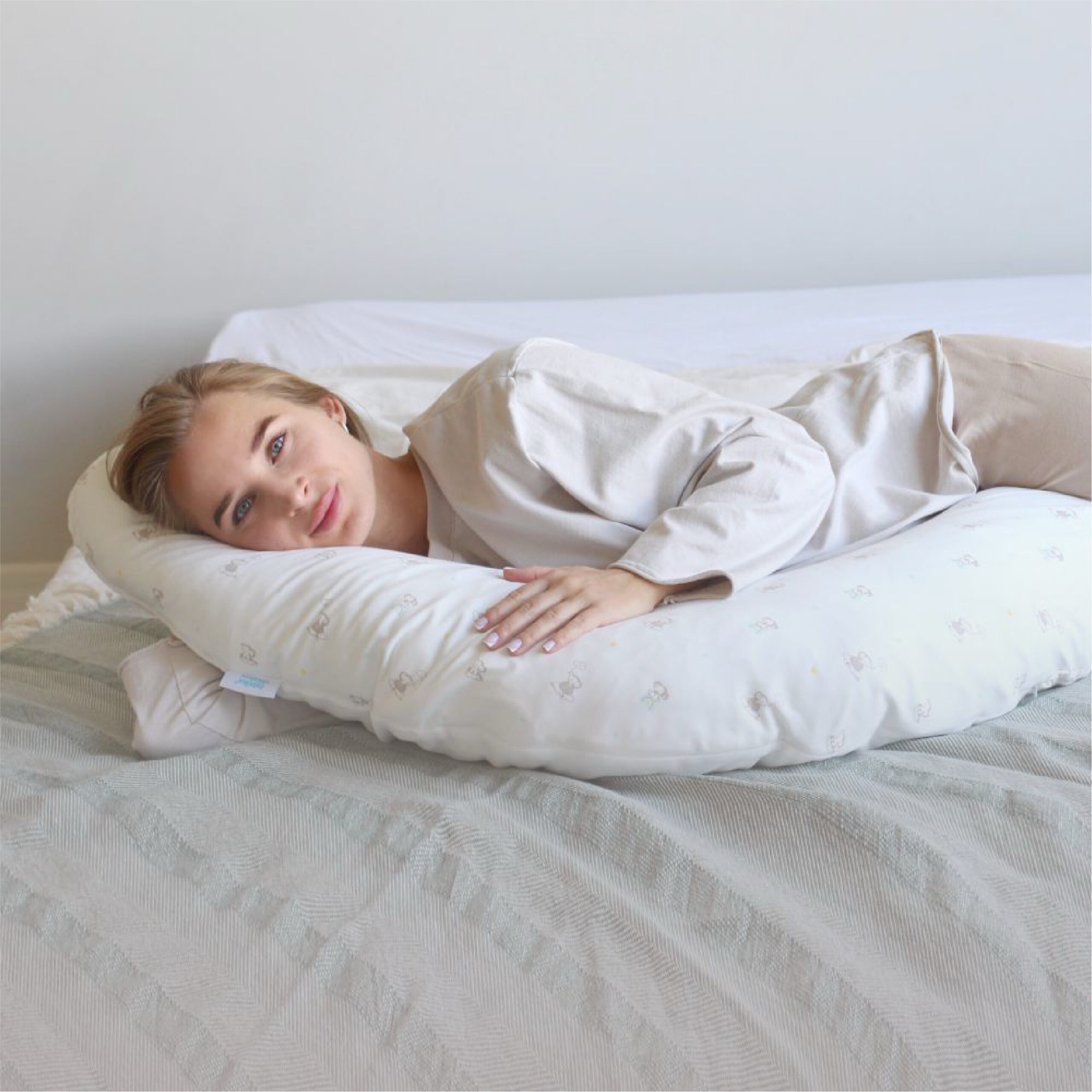 Подушка для беременных – аксессуар, который по достоинству оценит каждая будущая мама. Её удобно использовать в кровати во время отдыха, разгружая мышцы бёдер или  в положении сидя для удобной поддержки поясницы. Наполнителем служит гипоаллергенный комфорель, который не сбивается в комки при длительном использовании. На нижнем чехле есть молния, которая позволяет достать наполнитель и отрегулировать плотность подушки, подстраивая её под себя.