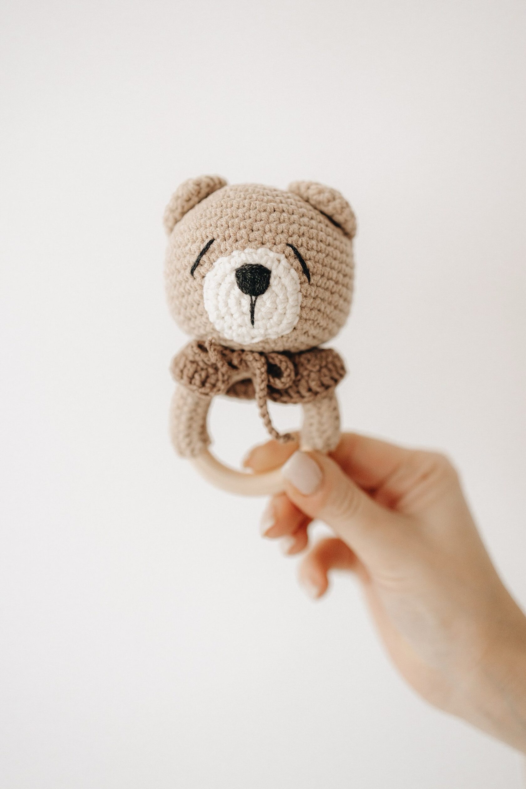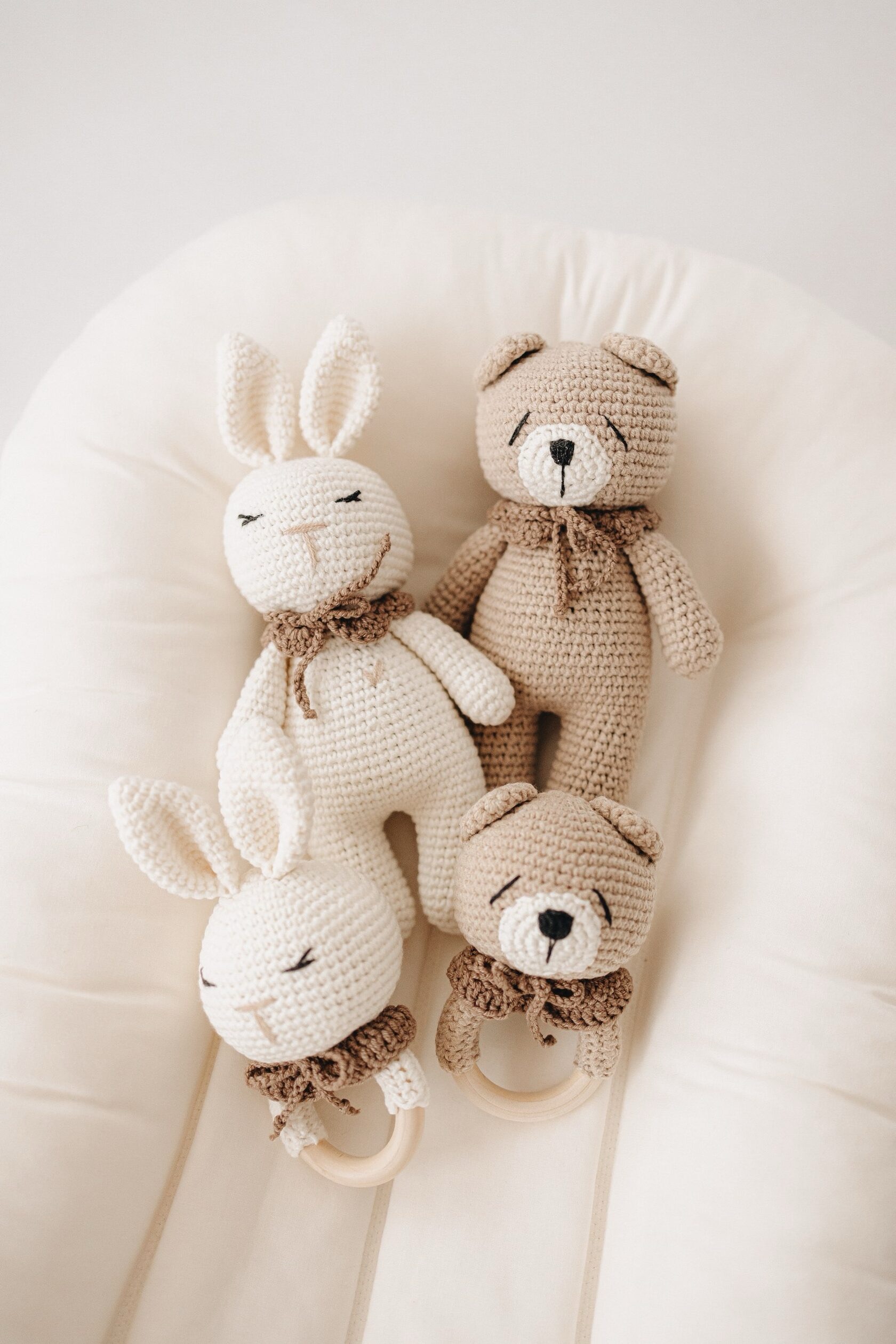Вязанные зверята-погремушки с игровым наполнением в виде приятного звона.