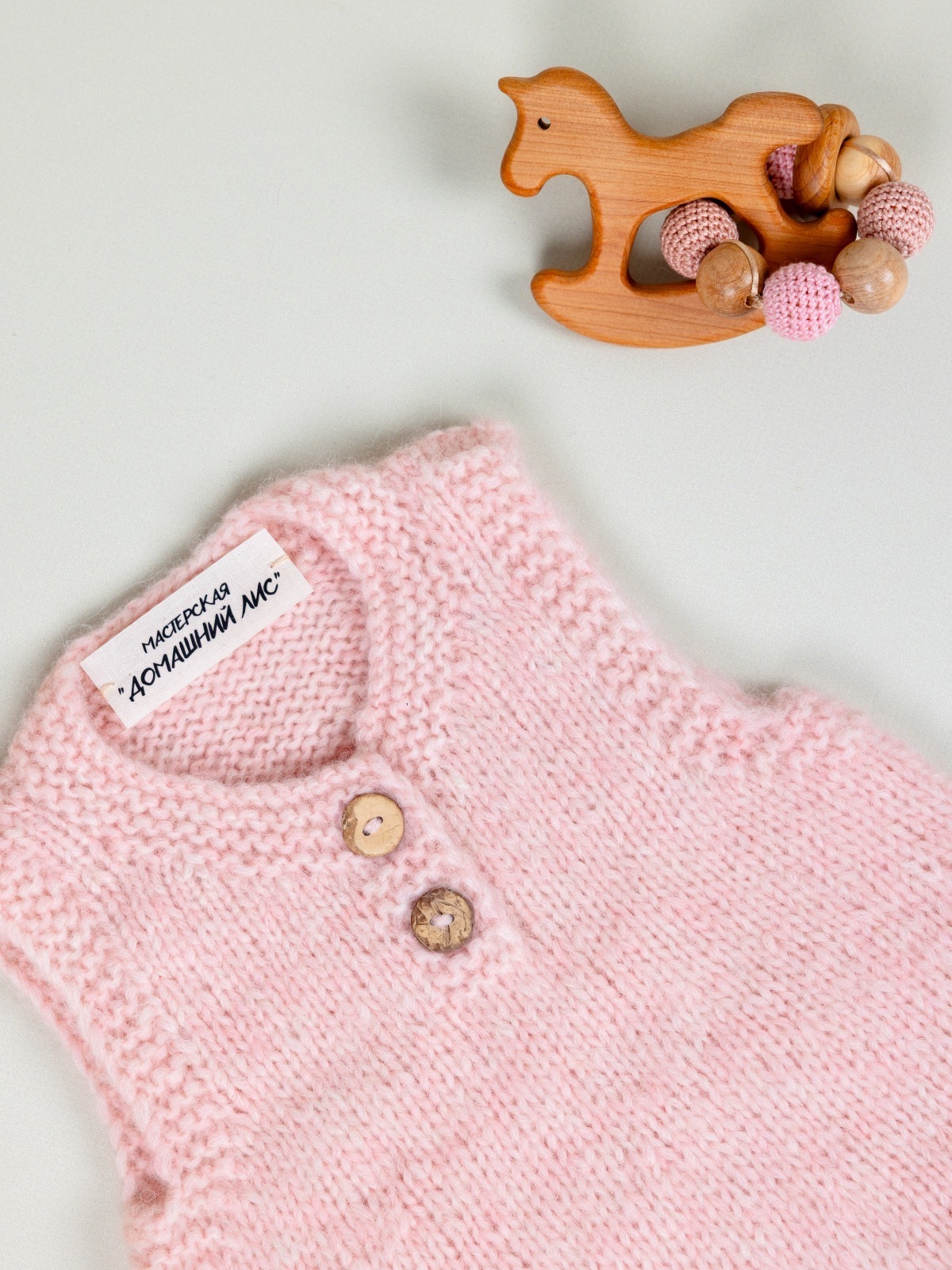 Мягкий и уютный комбинезон ручной работы из пряжи премиум-класса — идеальный выбор для малышей. Тёплая, но лёгкая пряжа с содержанием альпаки (58%) и шерсти (14%) дарит нежное тепло, не раздражает кожу и обеспечивает комфорт даже в прохладные дни. Удобная застёжка на деревянные пуговицы облегчает переодевание.