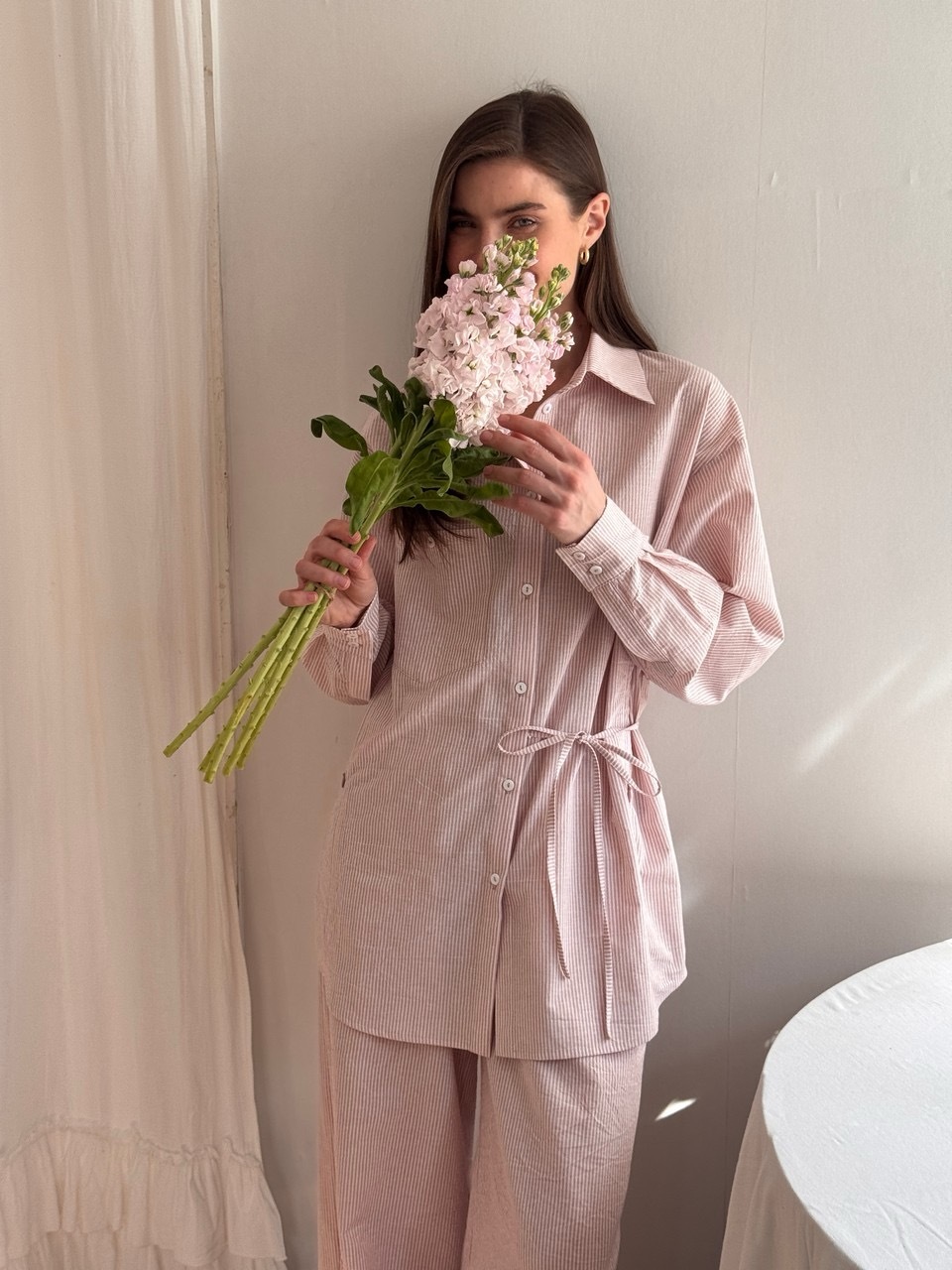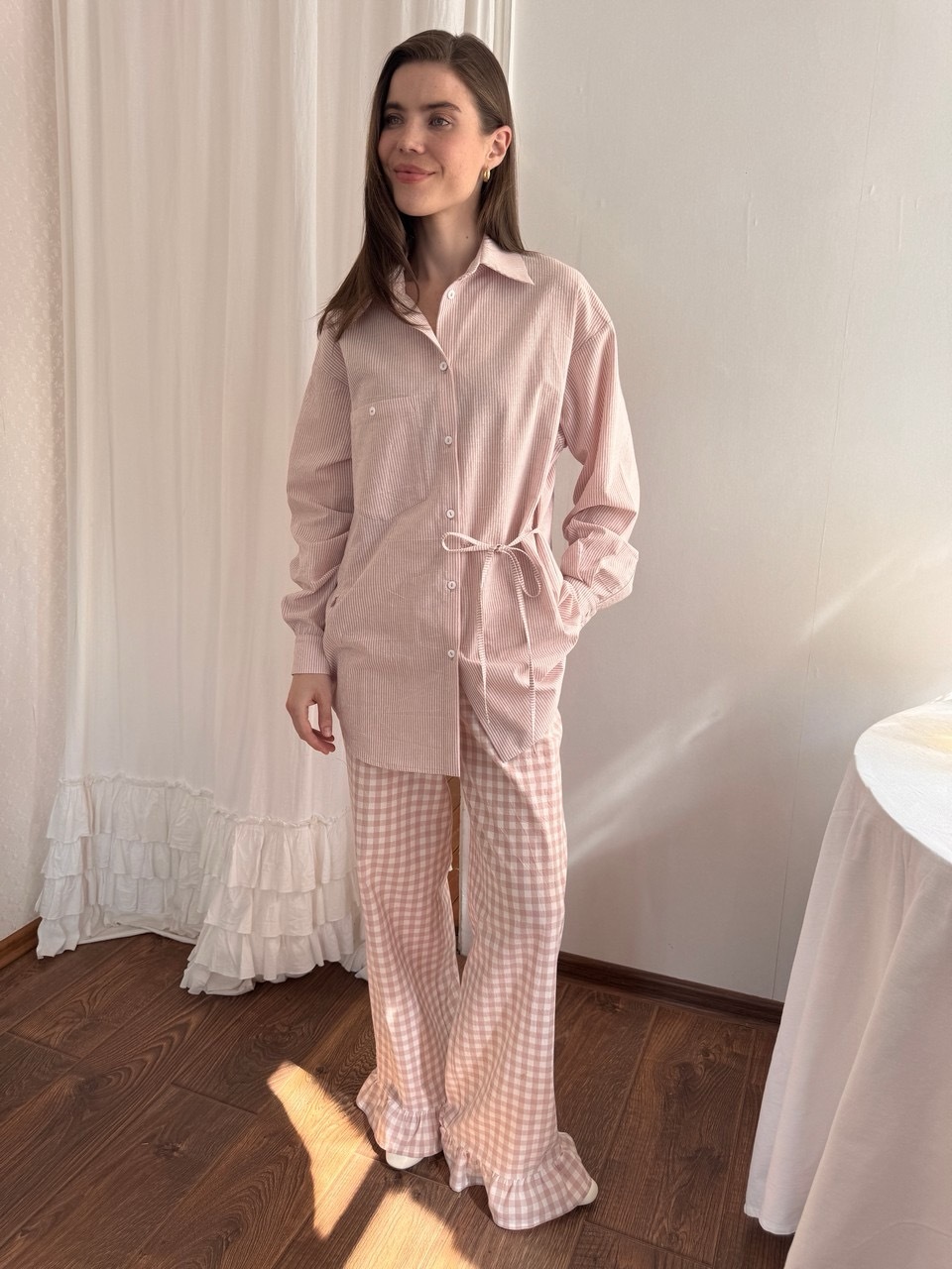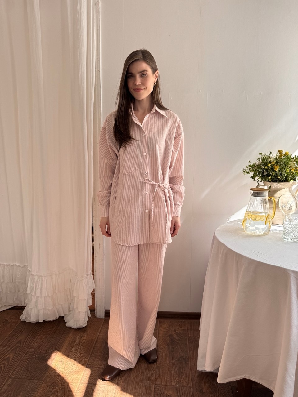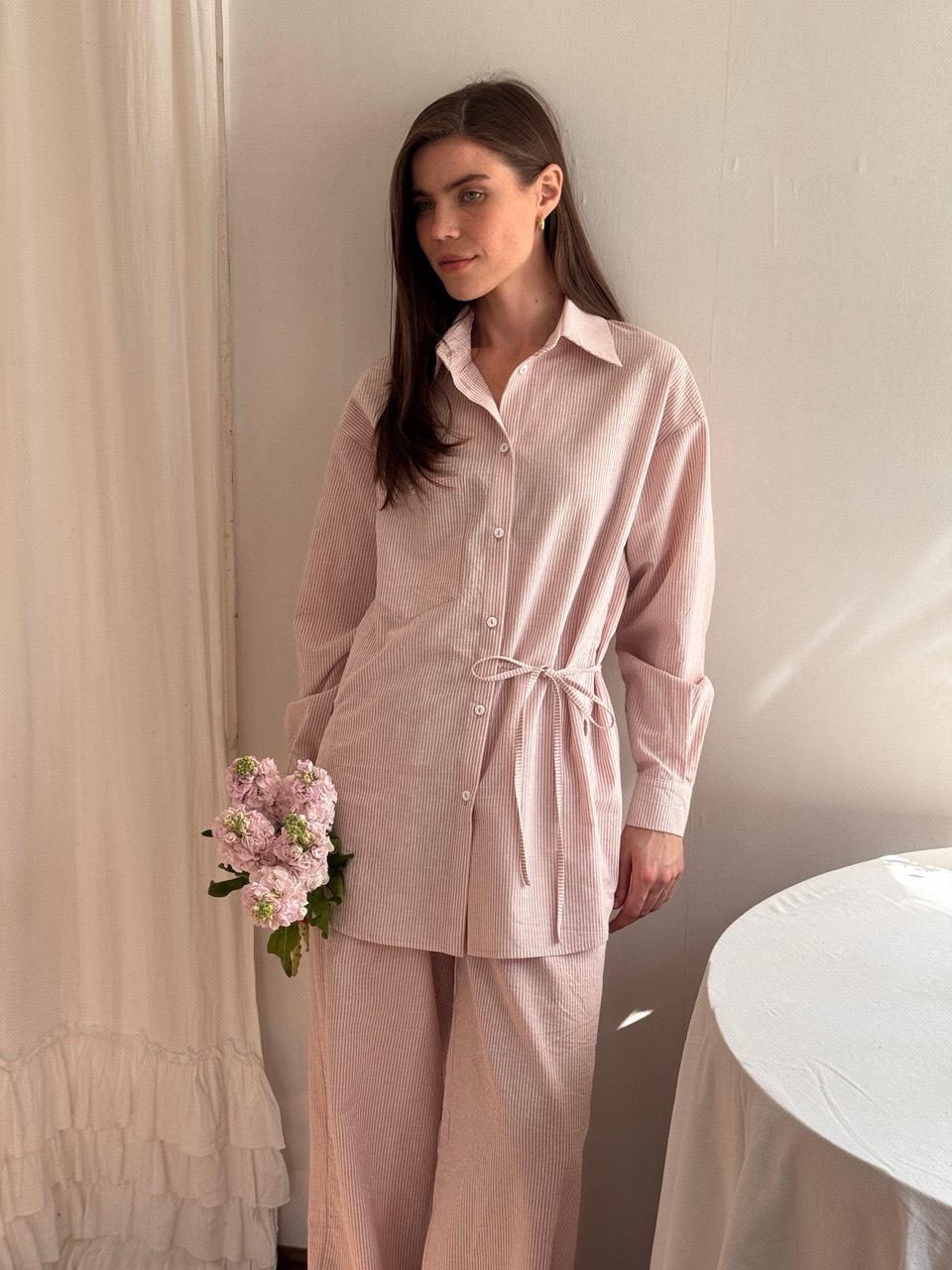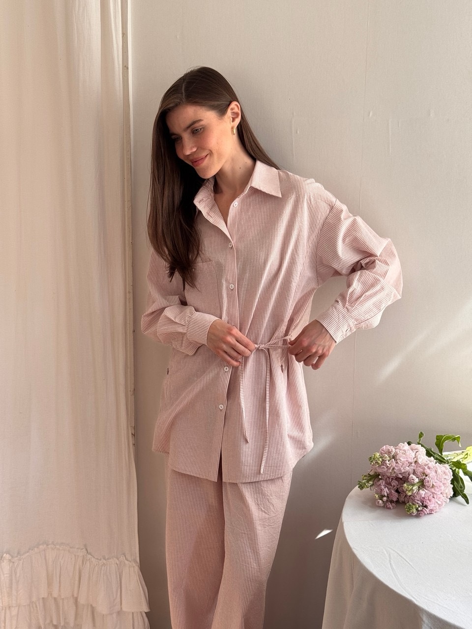 Стильная рубашка свободного силуэта из комфортного, дышащего, вареного хлопка. Практически не нуждается в глажке благодаря легкому крэш-эффекту. Завязки в линии талии делают образ интереснее и визуально создают более изящный силуэт. В рельефах мы предусмотрели незаметные молнии для комфортного кормления малыша грудью. Вам нужно просто потянуть замочек и приложить ребенка к груди не расстегивая пуговиц и не оголяя грудь. Сочетайте рубашку с брюками в тон из нашей коллекции или любой другой вещью из вашего гардеробе.