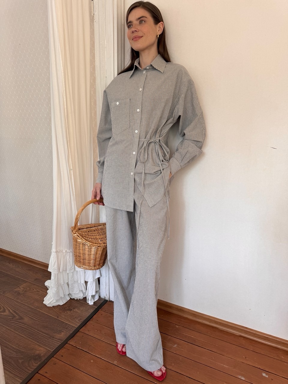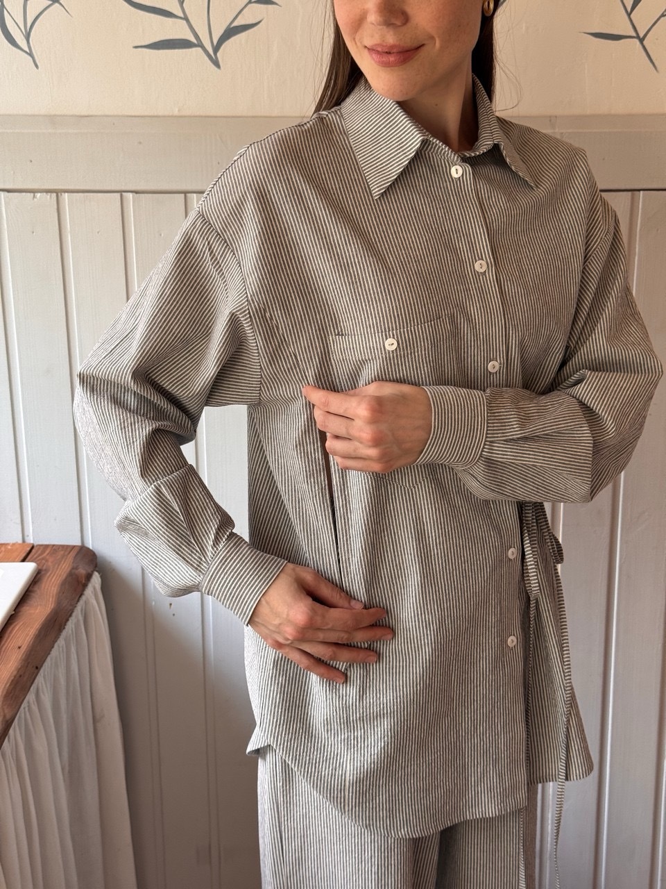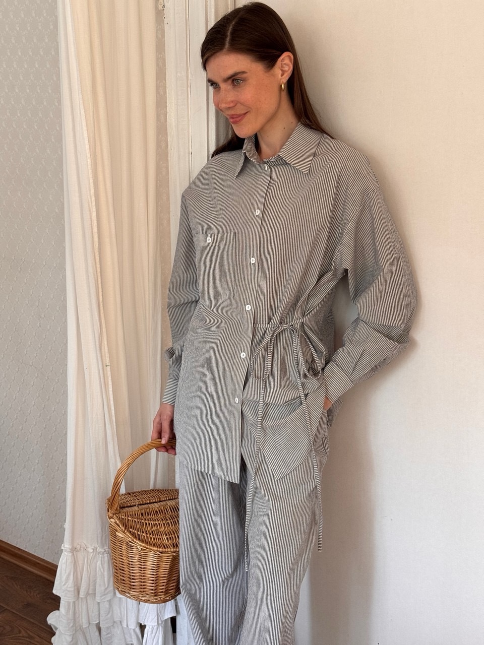 Стильная рубашка свободного силуэта из комфортного, дышащего, вареного хлопка. Практически не нуждается в глажке благодаря легкому крэш-эффекту. Завязки в линии талии делают образ интереснее и визуально создают более изящный силуэт. В рельефах мы предусмотрели незаметные молнии для комфортного кормления малыша грудью. Вам нужно просто потянуть замочек и приложить ребенка к груди не расстегивая пуговиц и не оголяя грудь. Сочетайте рубашку с брюками в тон из нашей коллекции или любой другой вещью из вашего гардеробе.