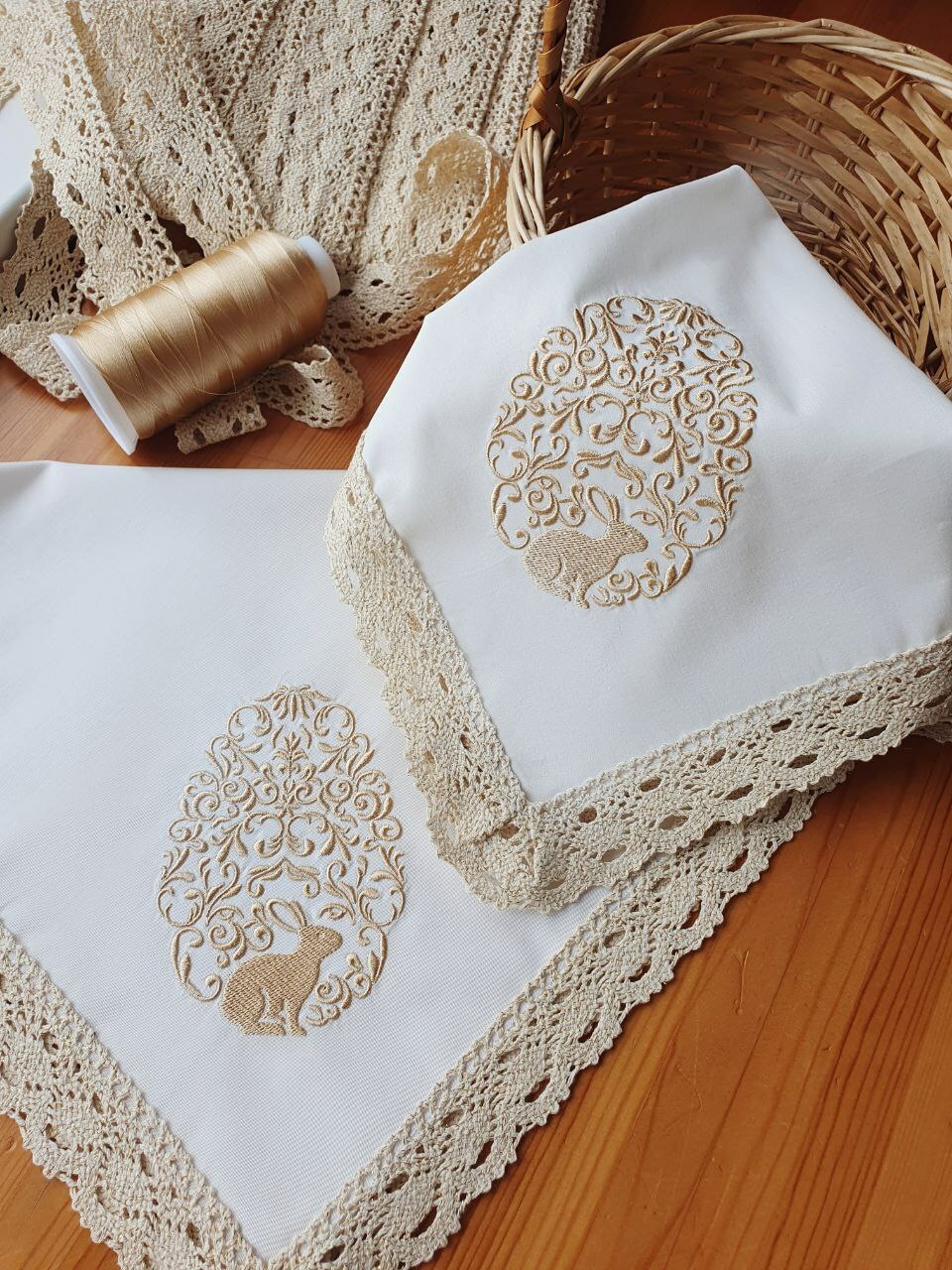 Пасхальная салфетка с кружевом цвета пшеницы и вышивкой станет идеальным подарком близким на праздник Светлой Пасхи!