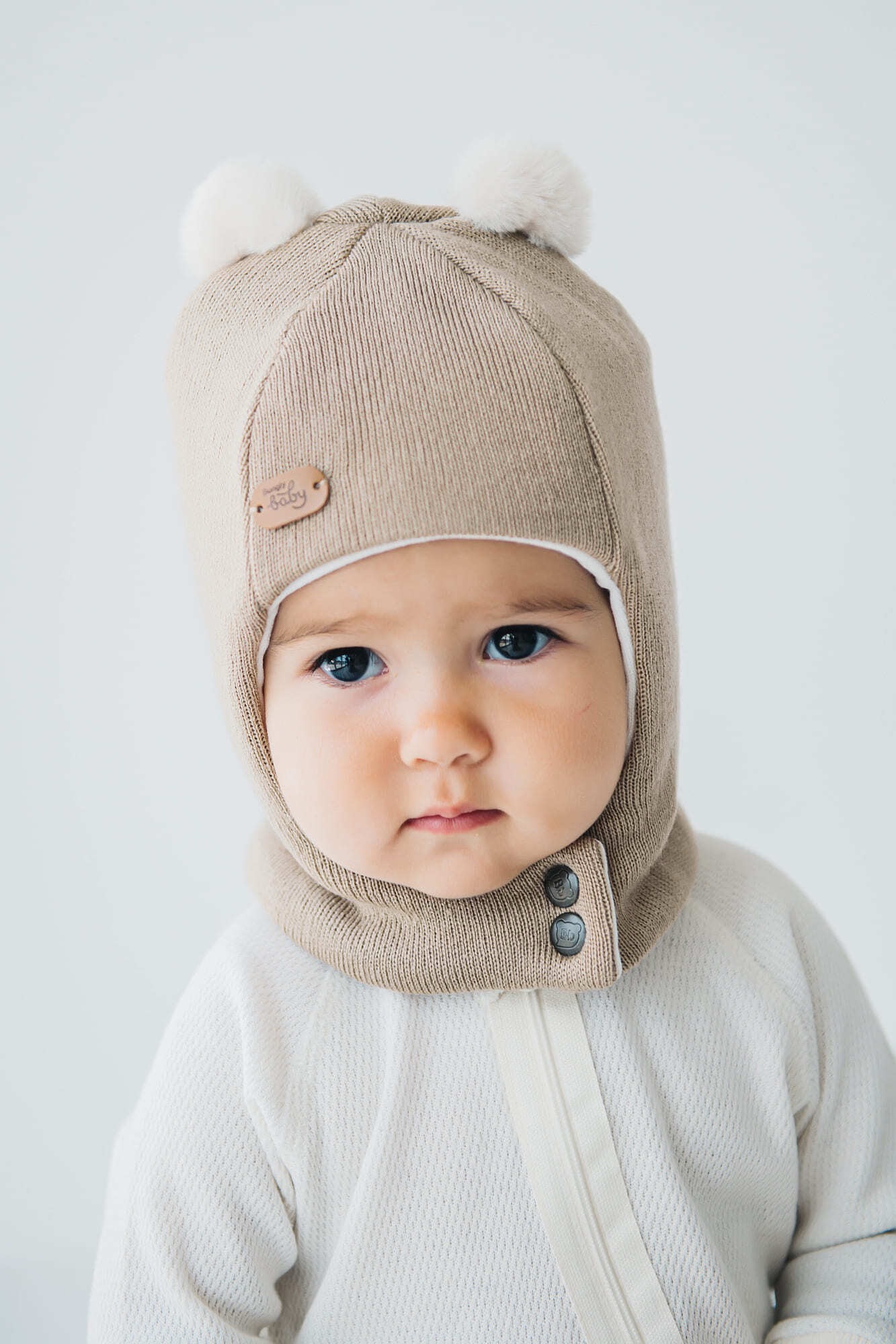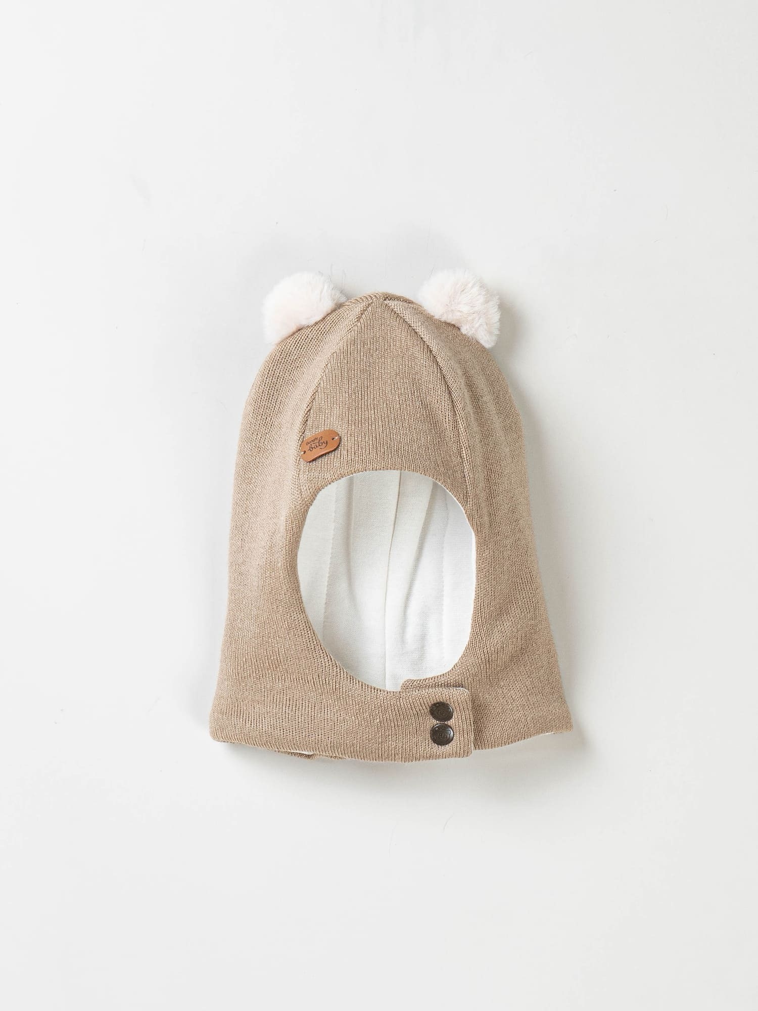 Шлем зимний из смесовой шерсти "Экрю" на кнопках