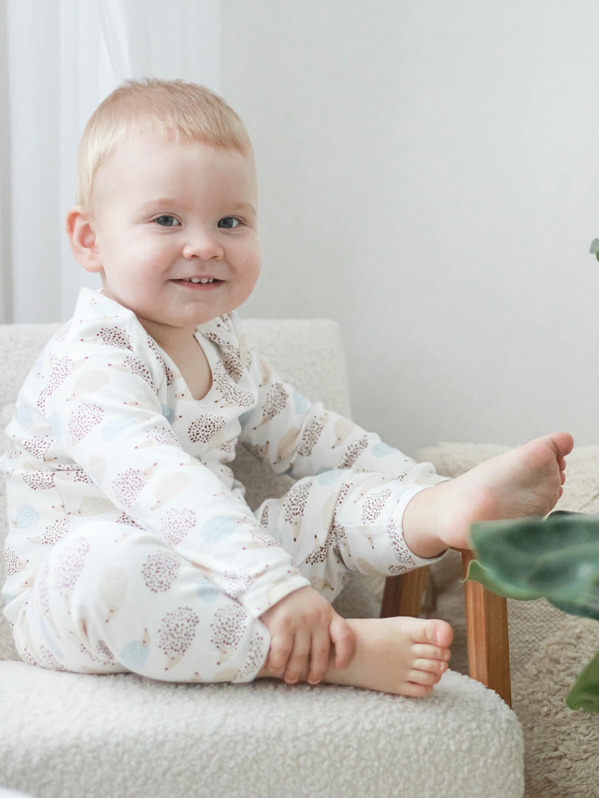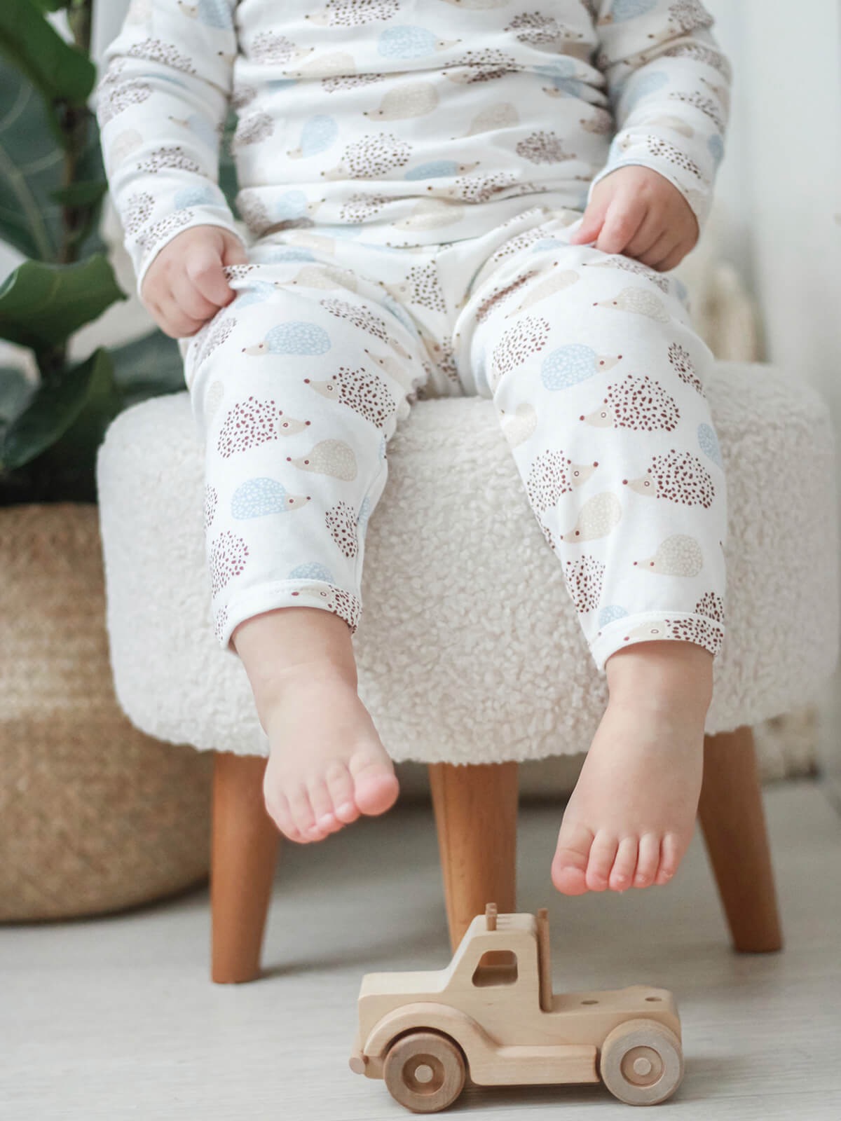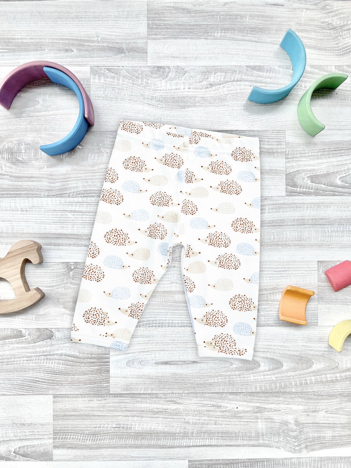 Штанишки Mjölk [мьёльк] Ёжики – классические трикотажные штанишки с открытой ножкой на всех размерах. Выполнены из нежного и плотного хлопка, не мешают малышу активно двигаться и не сковывают движений.