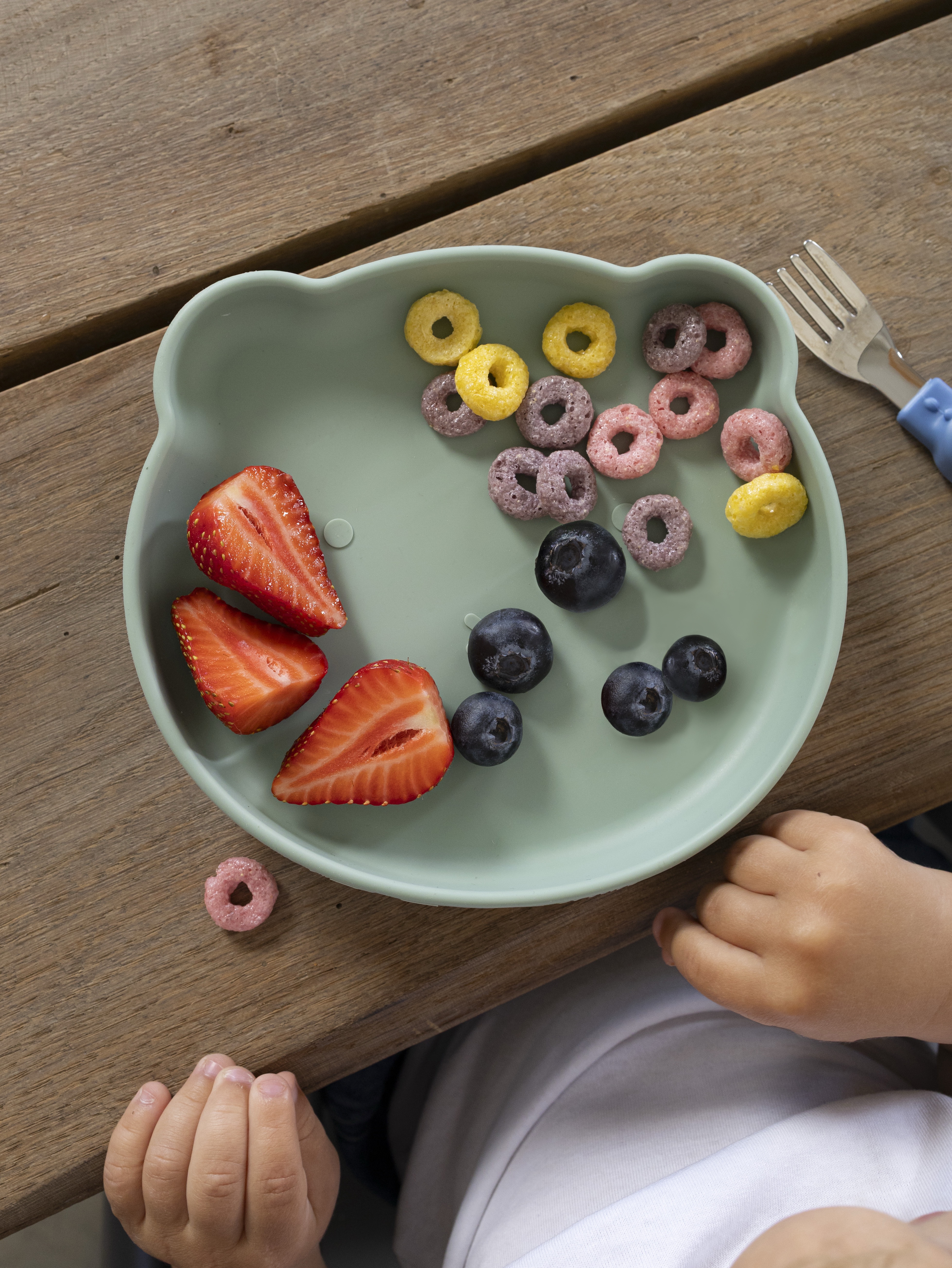 Тарелка на присоске силиконовая несекционная идеально подходит как посуда для прикорма, кормления и самостоятельных приёмов пищи для малыша от 6 месяцев.