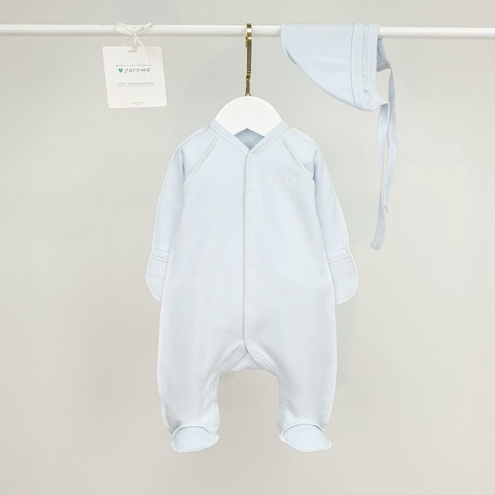 Комфортный слип для малышей в нежном голубом оттенке, предназначенный для ежедневной носки. Модель обеспечивает удобную посадку и подходит для использования дома и на прогулках.